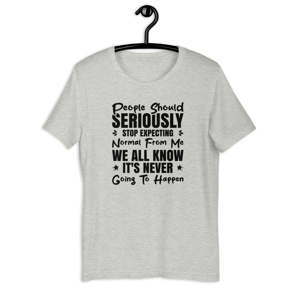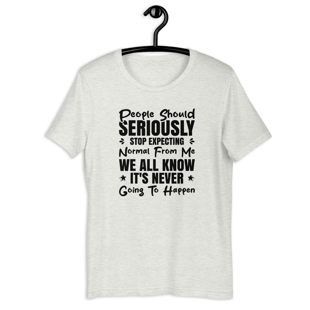 Funny, bold, and unapologetically true. The “People Should Seriously Stop Expecting Normal From Me — We All Know It’s Never Going to Happen” T-shirt is for anyone who proudly marches to the beat of their own drum. It’s playful, sassy, and a perfect reminder that being yourself is always more fun than fitting in.