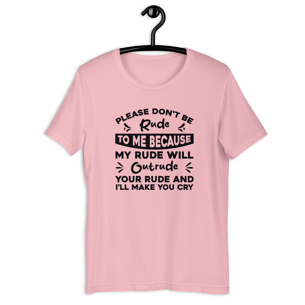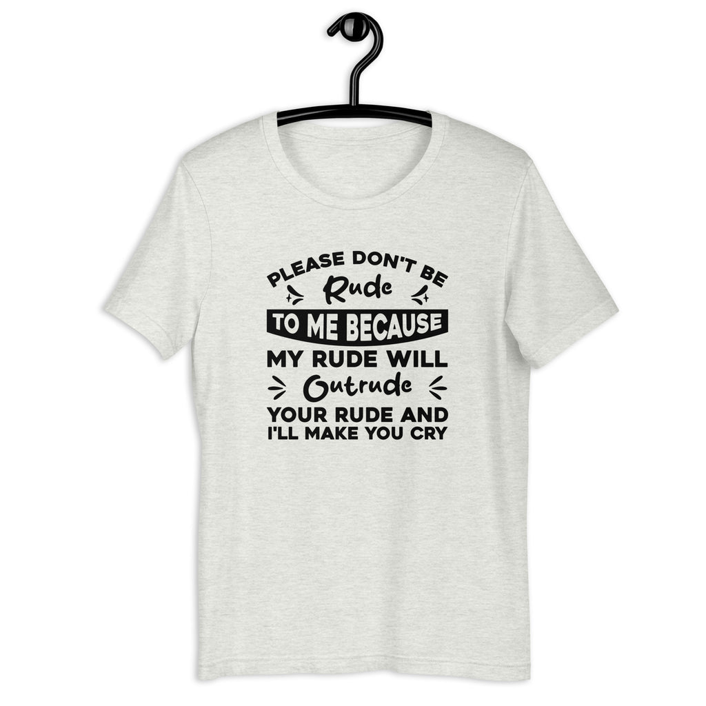 Serve a warning with style in the “Please Don’t Be Rude to Me — My Rude Will Outrude Your Rude and I’ll Make You Cry” T-shirt — the perfect mix of attitude, humor, and unapologetic honesty. This tee is for the people who don’t start drama… but absolutely finish it with precision, confidence, and a little extra sarcasm.