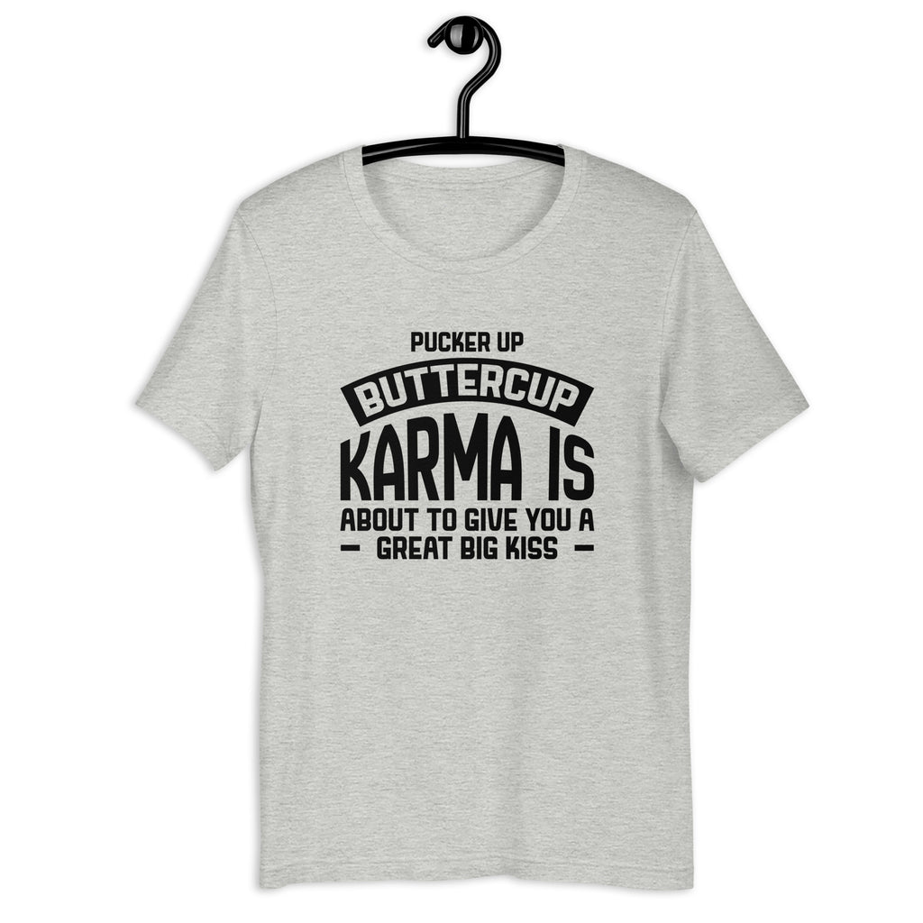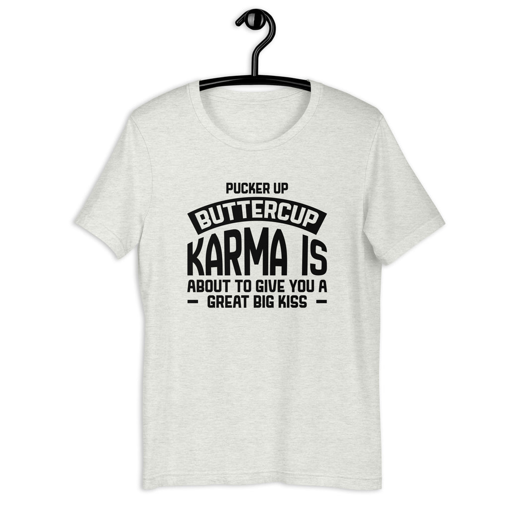 Serve a sweet warning with the “Pucker Up, Buttercup — Karma Is About to Give You a Great Big Kiss” T-shirt. This tee is the perfect way to remind the world that actions have consequences… and karma has impeccable timing. It captures that delicious moment when you don’t even have to lift a finger — because life is already handling the payback for you.