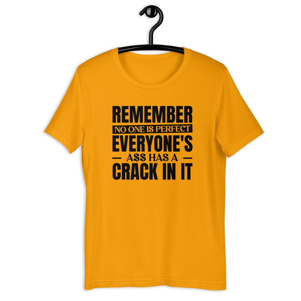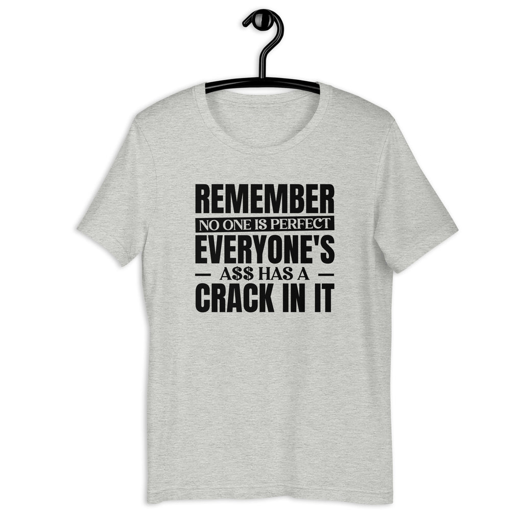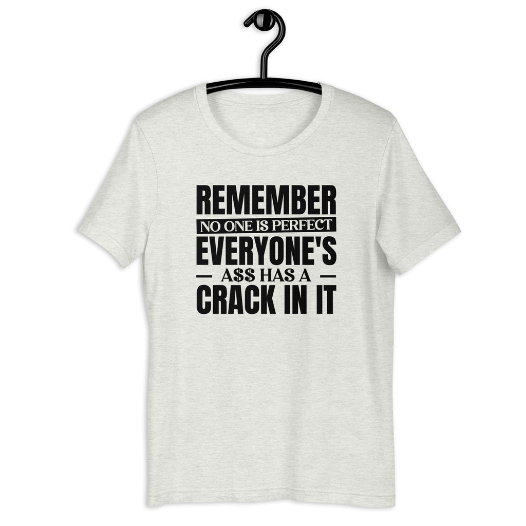 A funny reminder that nobody’s flawless. The “Remember No One Is Perfect, Everyone’s Ass Has a Crack in It” t-shirt delivers humor with a wink, making it the perfect conversation starter. Equal parts silly and relatable, it’s a great way to remind everyone not to take life—or themselves—too seriously.