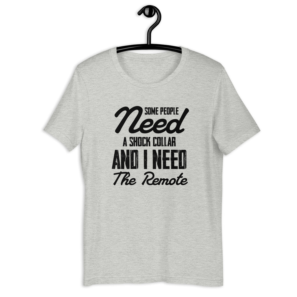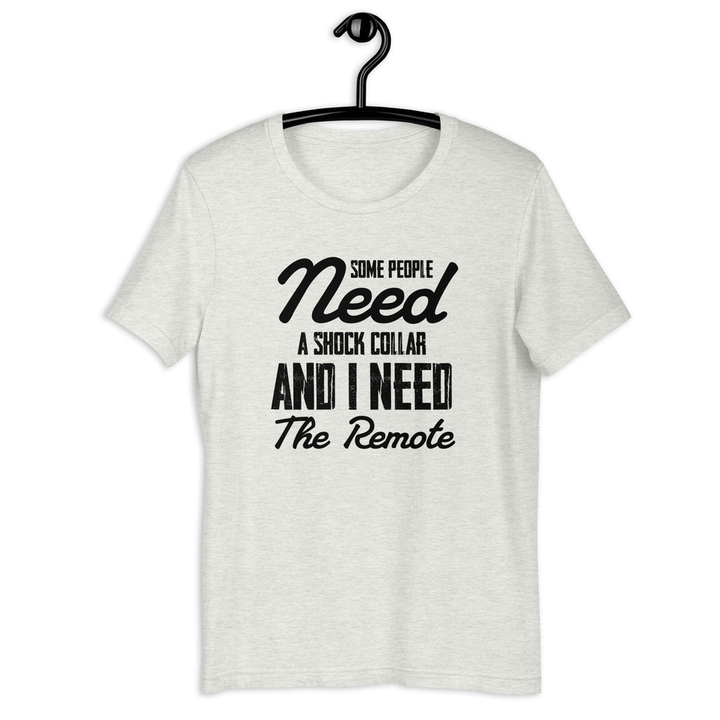 Turn your sarcasm all the way up with the “Some People Need a ‘Shock Collar’ and I Need the Remote” T-shirt — a hilariously dramatic way to express what it feels like dealing with people who test your patience on a daily basis. This tee delivers that over-the-top, cartoon-level humor perfect for anyone who jokes about needing just a little extra control when certain folks start acting wild.