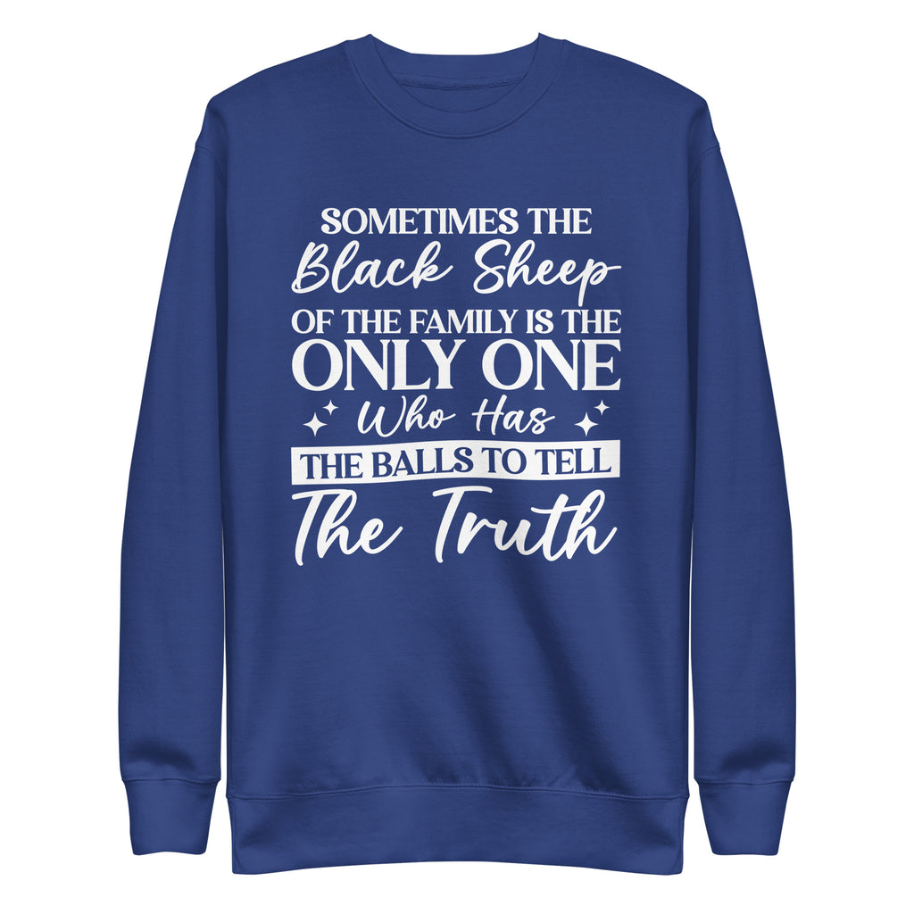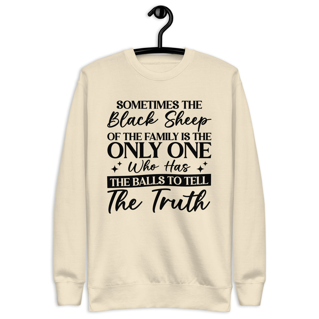 Stand out and speak up with the “Sometimes the Black Sheep of the Family Is the Only One Who Has the Balls to Tell the Truth” sweatshirt. Perfect for anyone who embraces their role as the outspoken one, this piece delivers comfort with a fearless attitude.