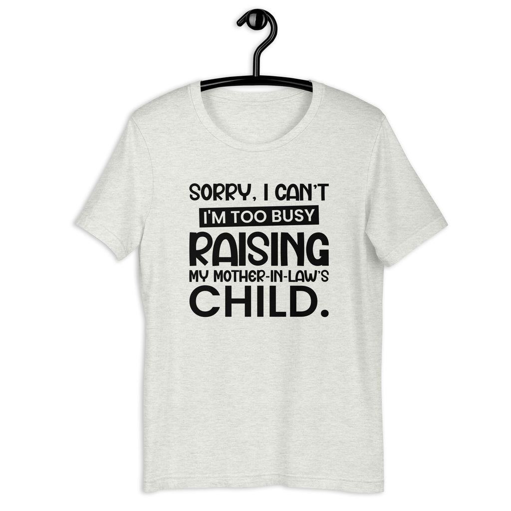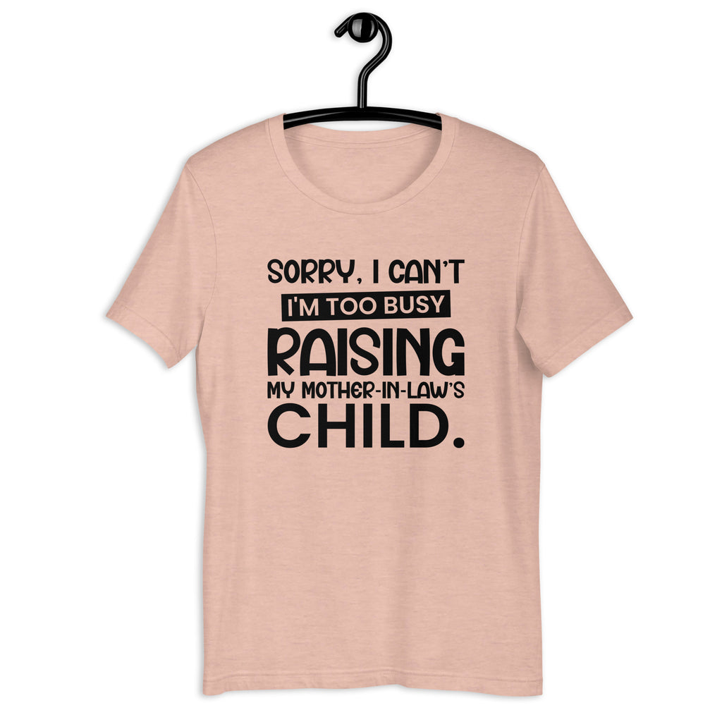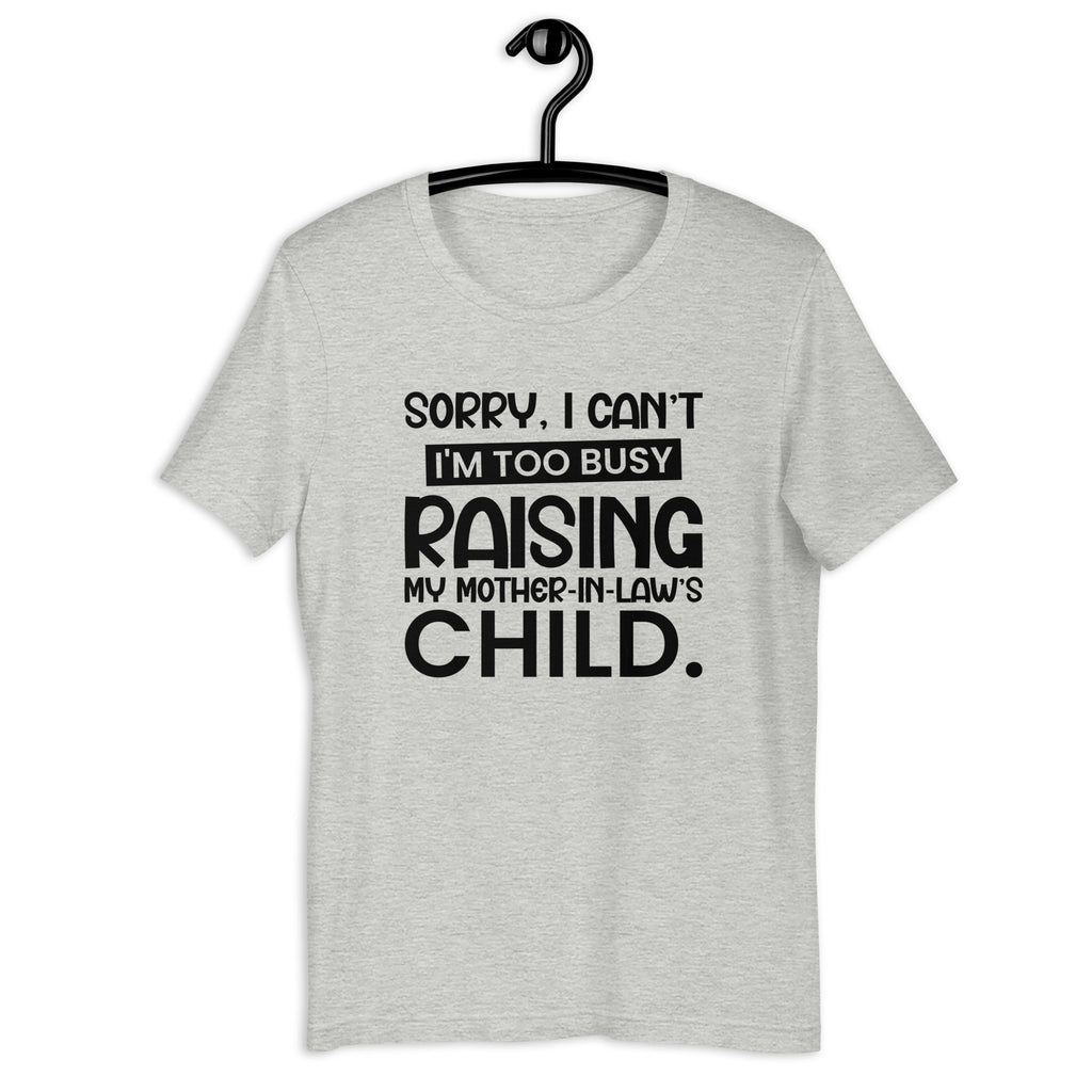 Family dynamics can be… complicated. This “Sorry I Can’t, I’m Too Busy Raising My Mother-in-Law’s Child” t-shirt is a witty take on in-law humor that hits a little too close to home.