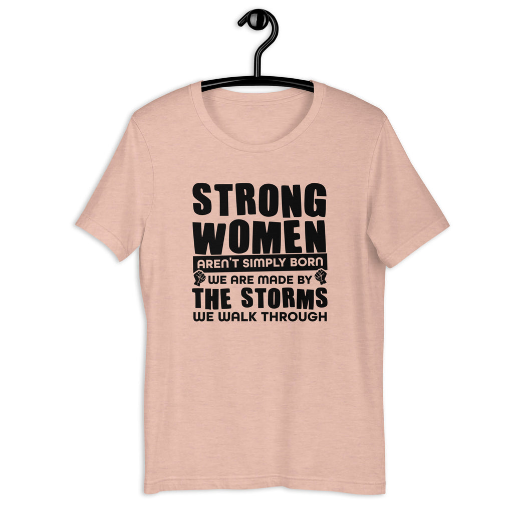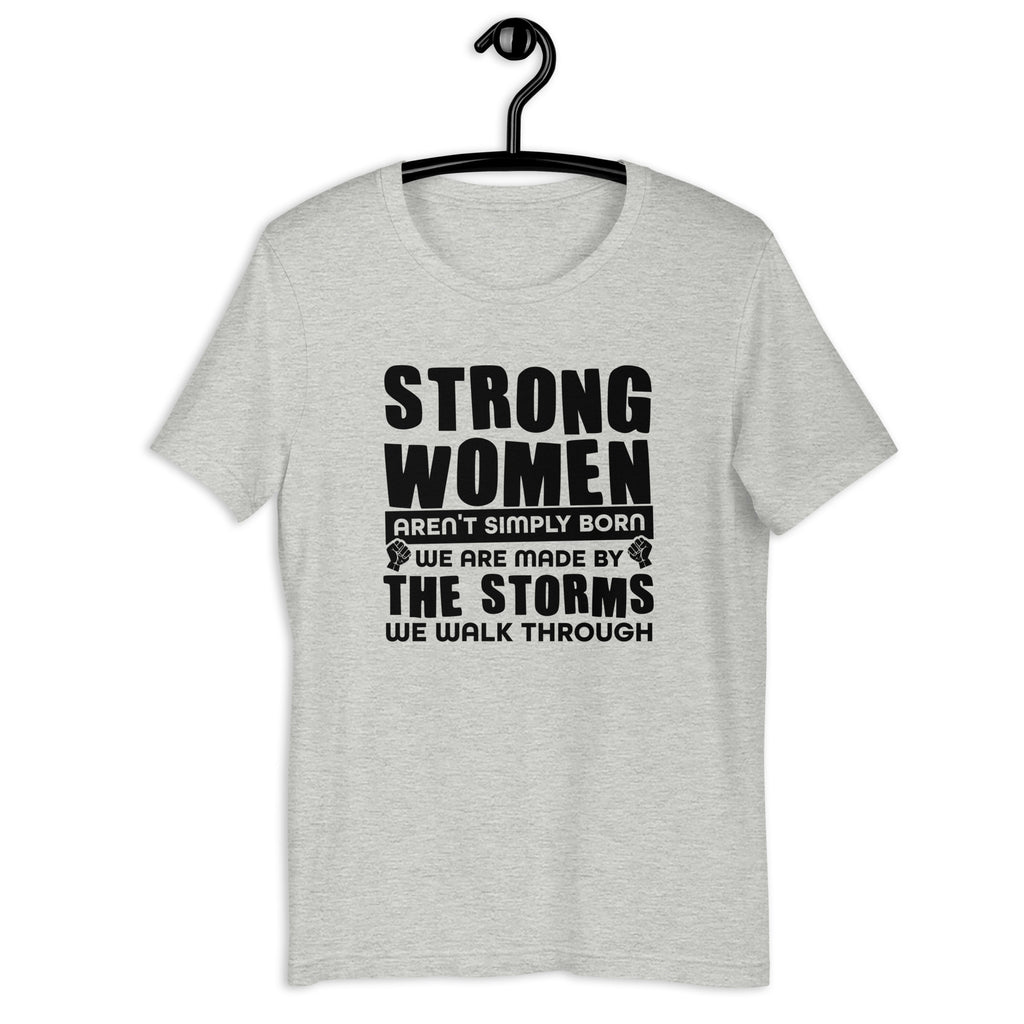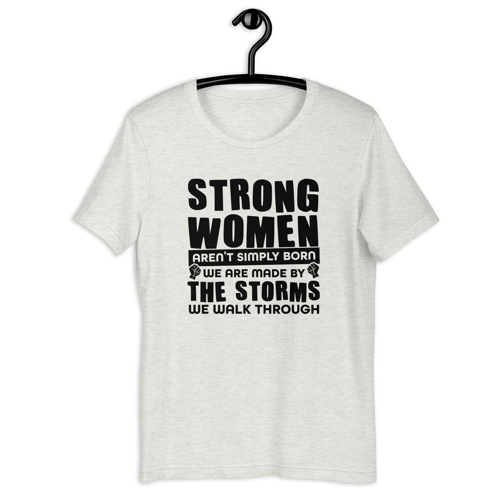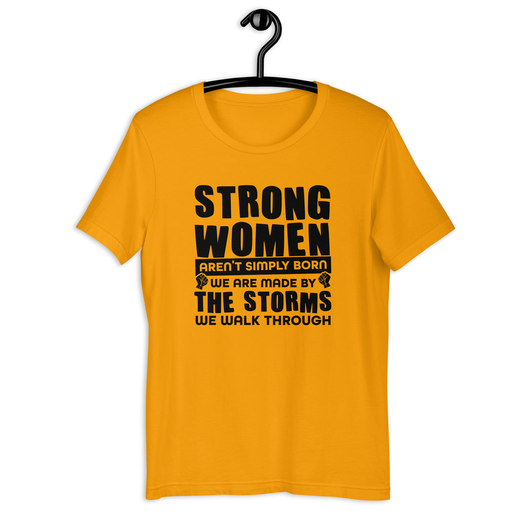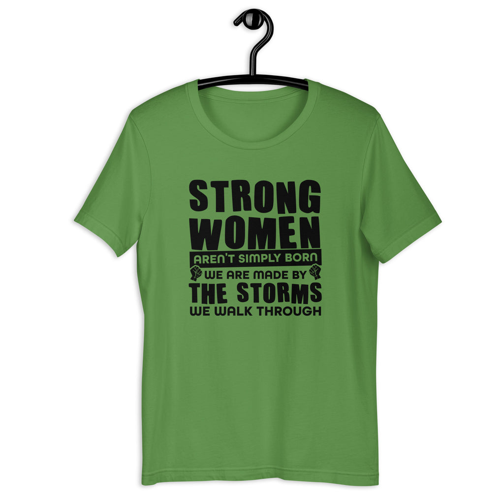 Strength isn’t handed out—it’s earned. The “Strong Women Aren’t Simply Born, We Are Made By The Storms We Walk Through” t-shirt is a powerful reminder of resilience, courage, and the beauty of overcoming challenges.