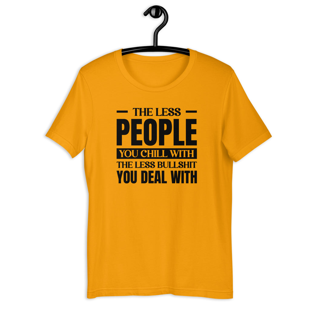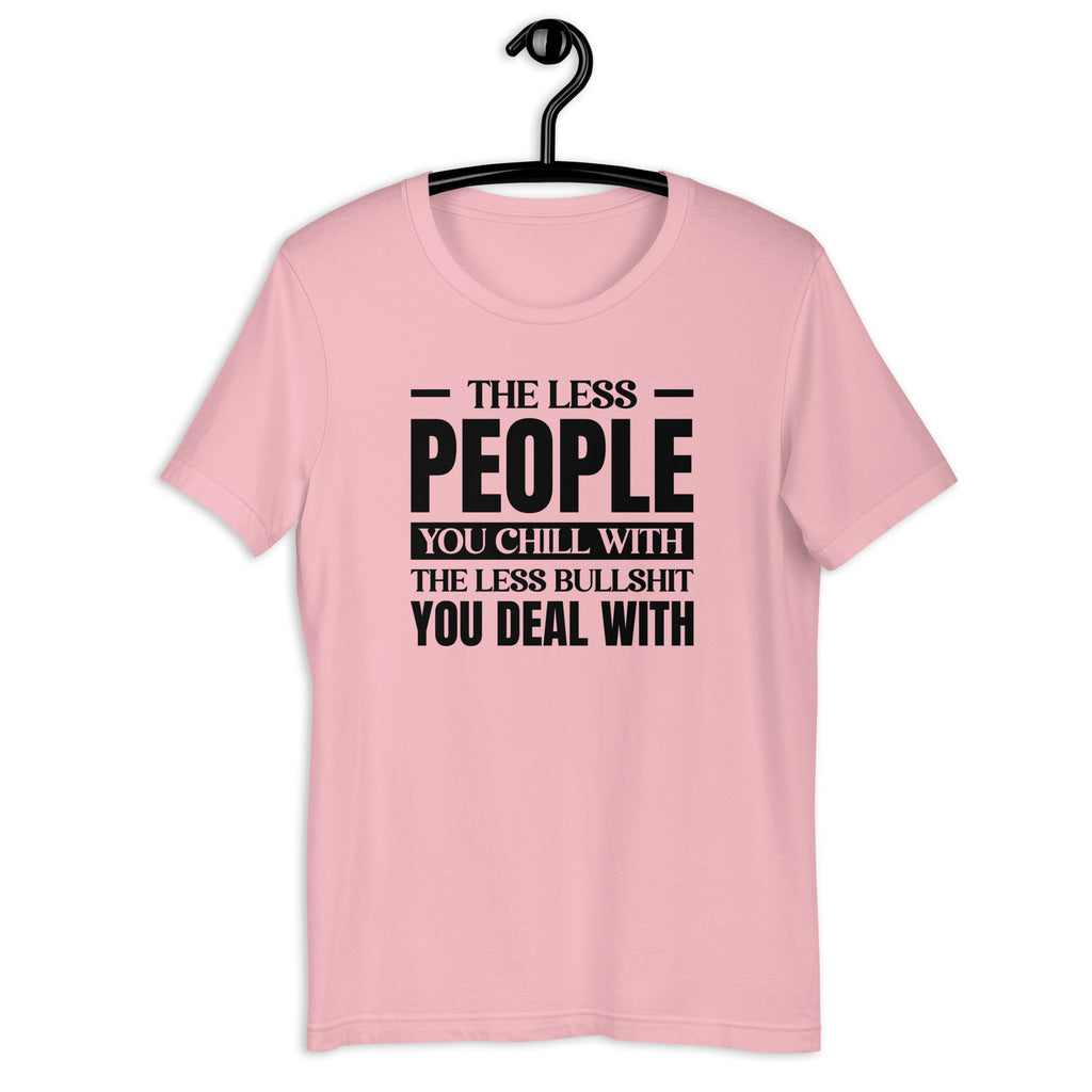 Keep your circle small and your peace big with the “The Less People You Chill With, The Less Bullshit You Deal With” T-shirt. This bold, no-nonsense tee is perfect for anyone who values good vibes, real friends, and a drama-free life.