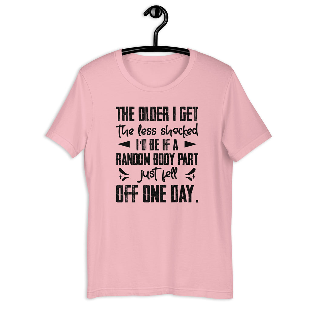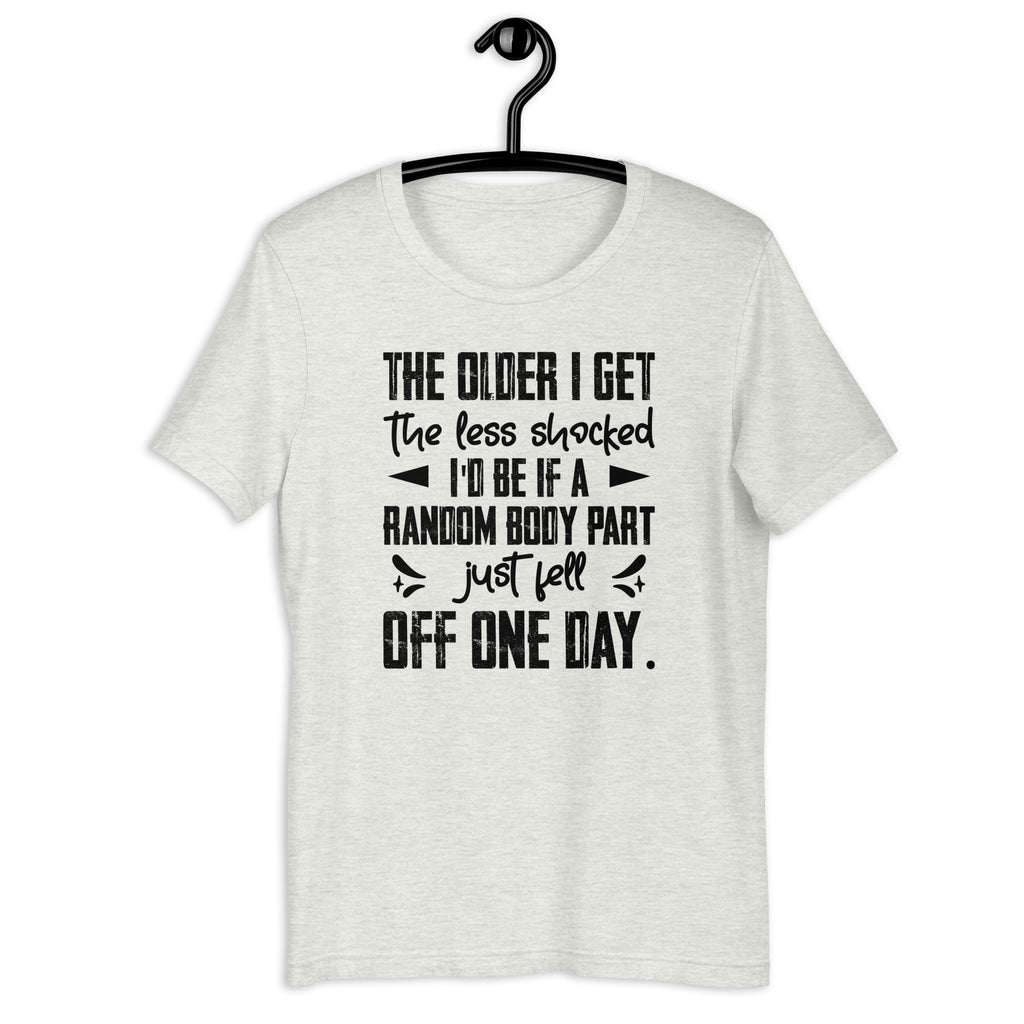 Embrace the hilarious side of aging with the “The Older I Get, the Less Shocked I’d Be If a Random Body Part Just Fell Off One Day” T-shirt. Perfect for anyone who laughs their way through the aches, cracks, and mystery pains of getting older, this tee delivers humor and honesty in equal measure.