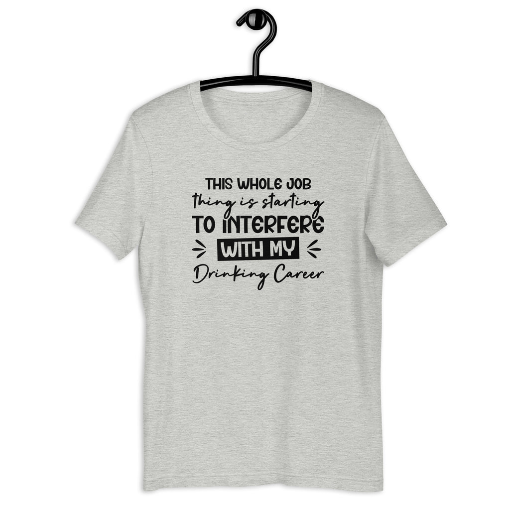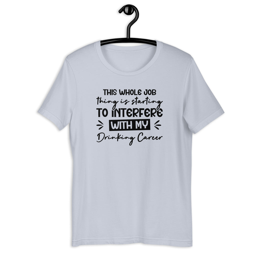 Keep the laughs flowing with this “This Whole Job Thing Is Starting to Interfere With My Drinking Career” t-shirt! Perfect for hardworking adults who know that sometimes the real passion starts after clocking out, this tee adds humor and bold personality to any outfit.