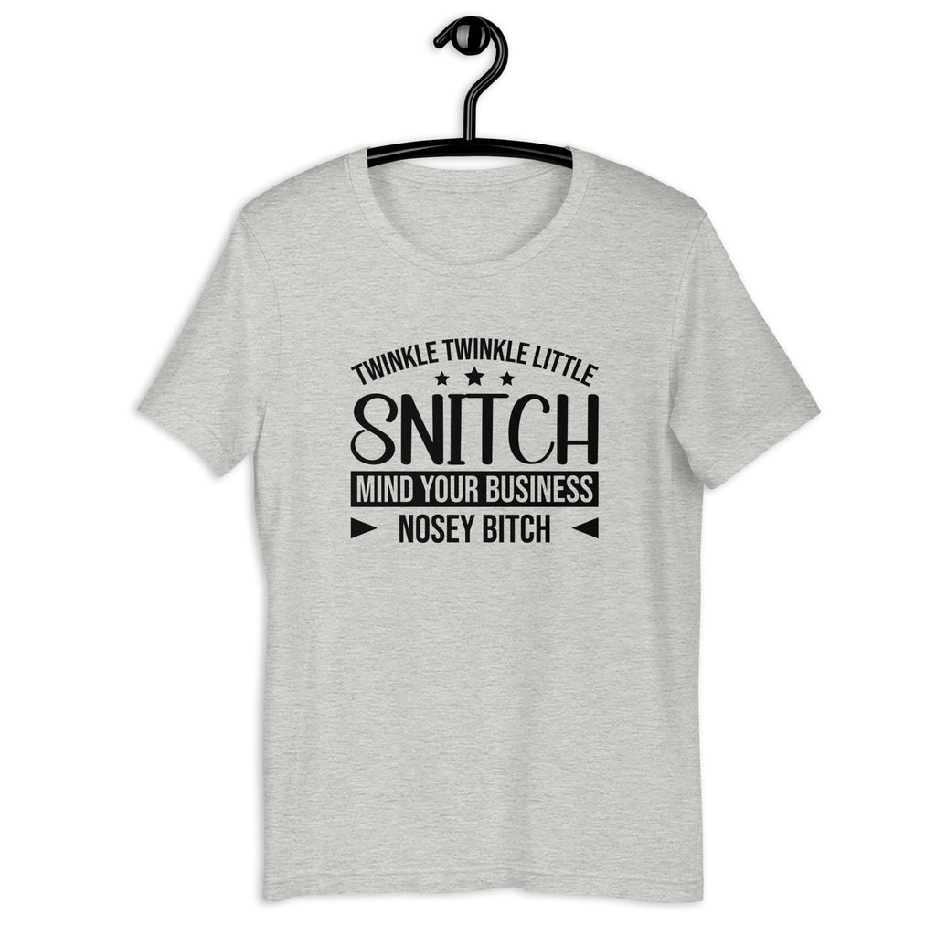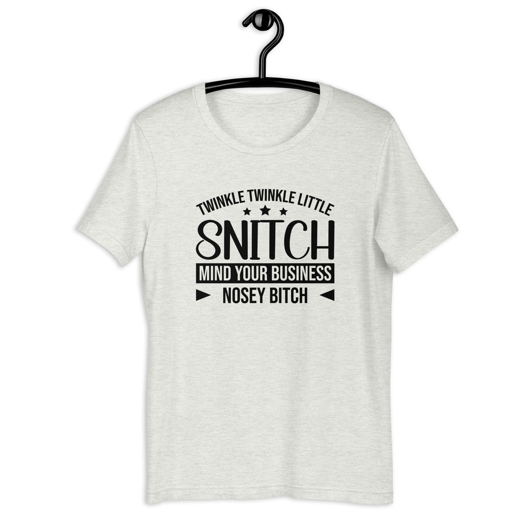 Give everyone a melodic warning with the “Twinkle Twinkle Little Snitch — Mind Your Business, Nosey Bitch” T-shirt — the perfect tee for anyone who’s tired of gossip, drama, and people who can't stay in their own galaxy. This shirt flips a childhood rhyme into a hilarious, grown-up message that leaves no room for confusion.