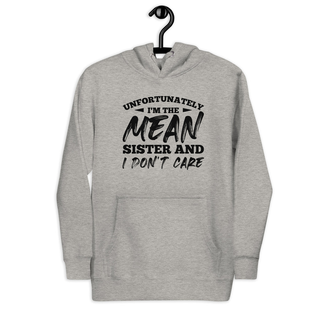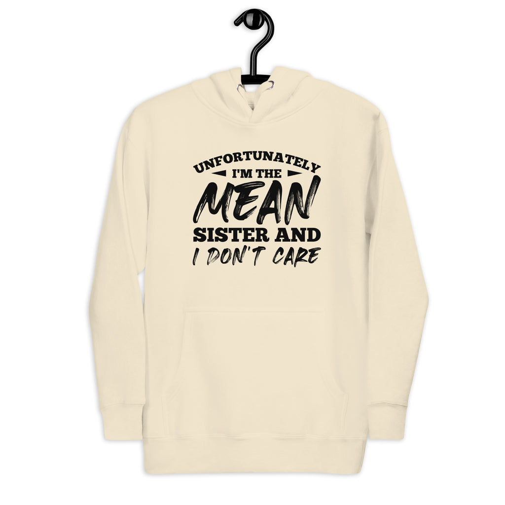 No apologies, no regrets. The “Unfortunately I’m the Mean Sister and I Don’t Care” hoodie is perfect for sisters who proudly own their savage streak. Funny, fierce, and a little ruthless, it’s the ultimate sibling statement piece.