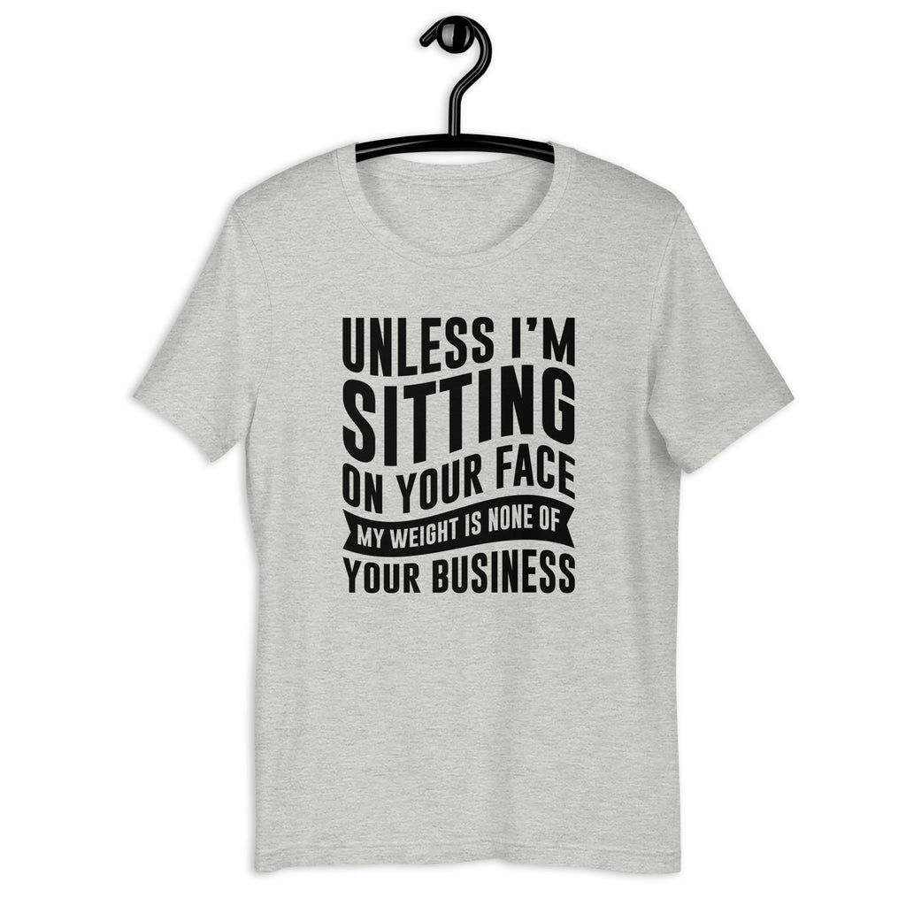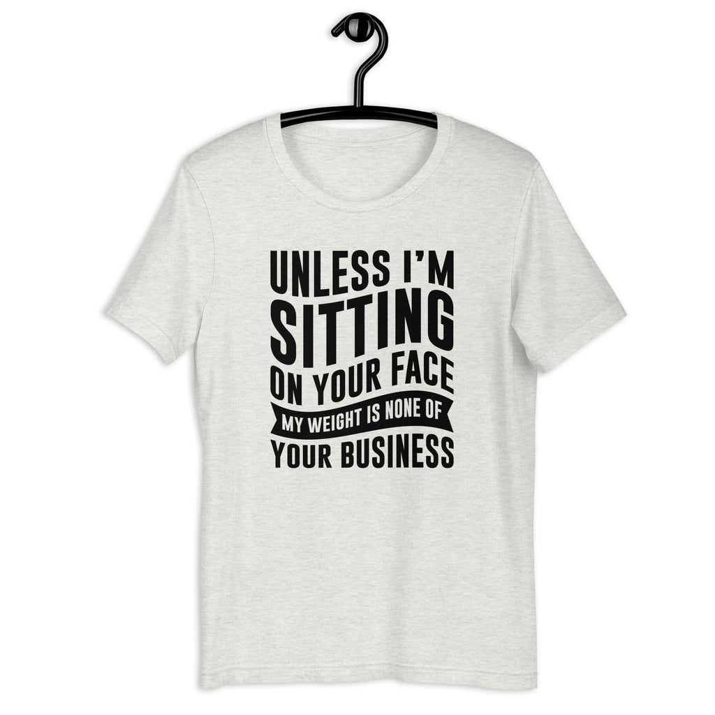 Turn heads and shut down the body-shamers with the “Unless I Am Sitting On Your Face, My Weight Is None of Your Business” t-shirt. Bold, sassy, and unapologetically confident, this shirt delivers the perfect clapback with humor and attitude.
