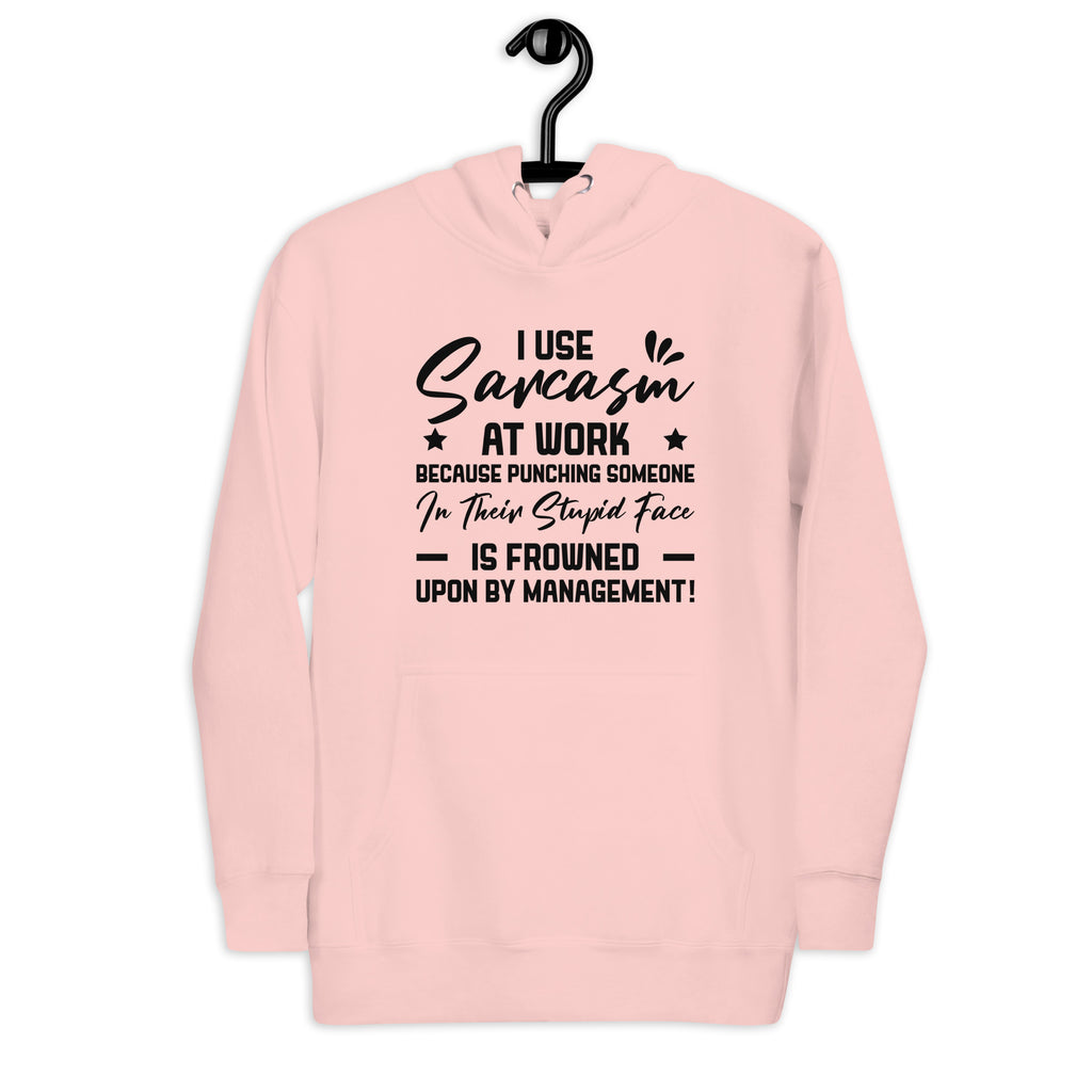 Sarcastic, workplace‑appropriate (barely), and brutally honest. The “Use Sarcasm ★ At Work ★ Because Punching Someone in Their Stupid Face Is Frowned Upon by Management” hoodie is made for anyone who survives the workday on coffee, patience, and a highly developed sense of sarcasm. It’s the perfect way to vent without getting called into HR.