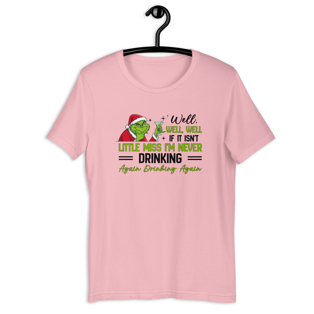 Let everyone know your promises are fun to make but even more fun to break — with the “Well, WELL, WELL LITTLE MISS ‘I’M NEVER DRINKING IF IT ISN’T AGAIN… DRINKING AGAIN’” T-shirt. This tee delivers the perfect mix of humor, honesty, and unapologetic fun, celebrating anyone who knows life (and drinks) is better when rules are flexible.