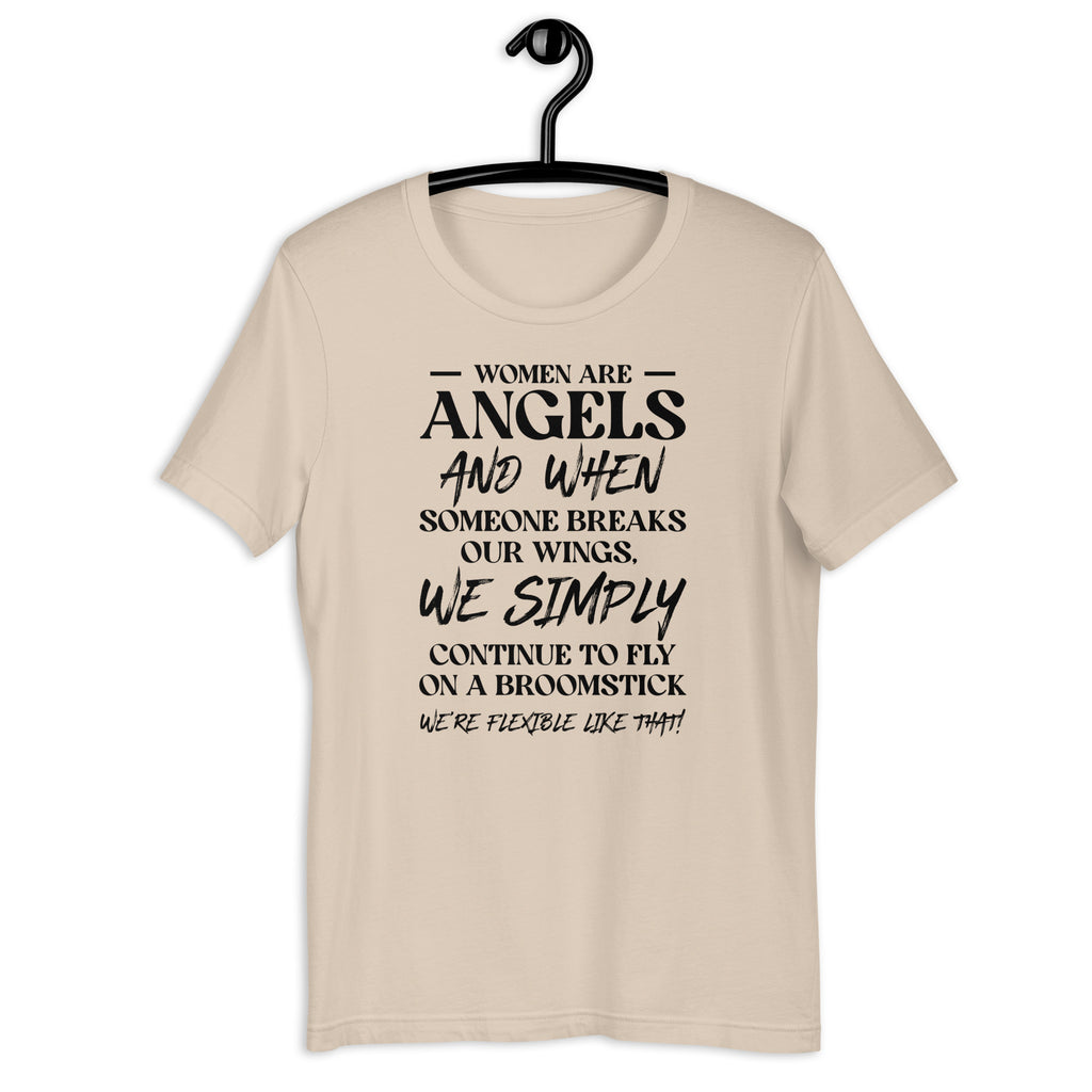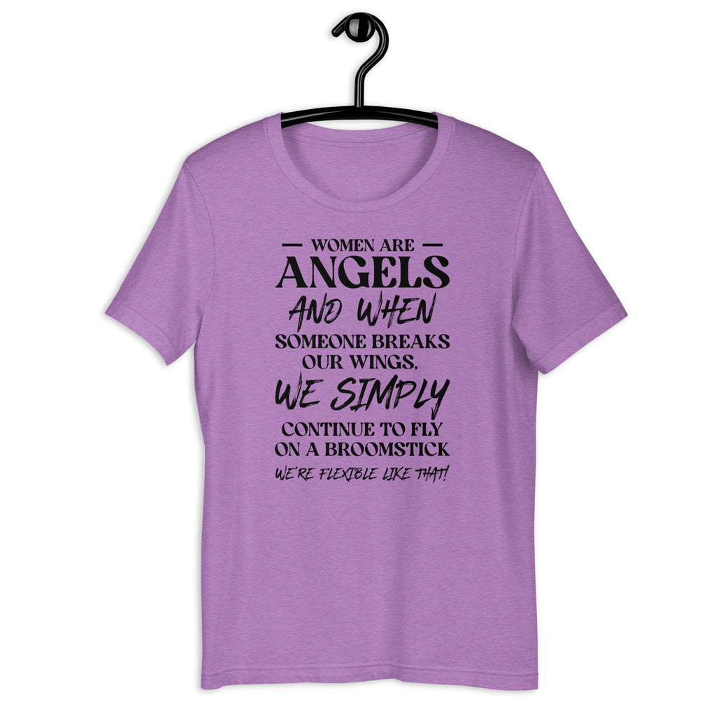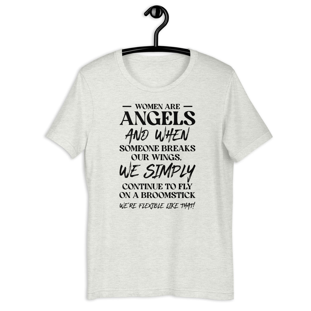 Show off your sassy spirit with the “Women Are Angels… And When Someone Breaks Our Wings, We Simply Continue to Fly on a Broomstick” t-shirt. A perfect blend of humor and empowerment, this tee celebrates women who rise above drama—with a little attitude and a lot of style.