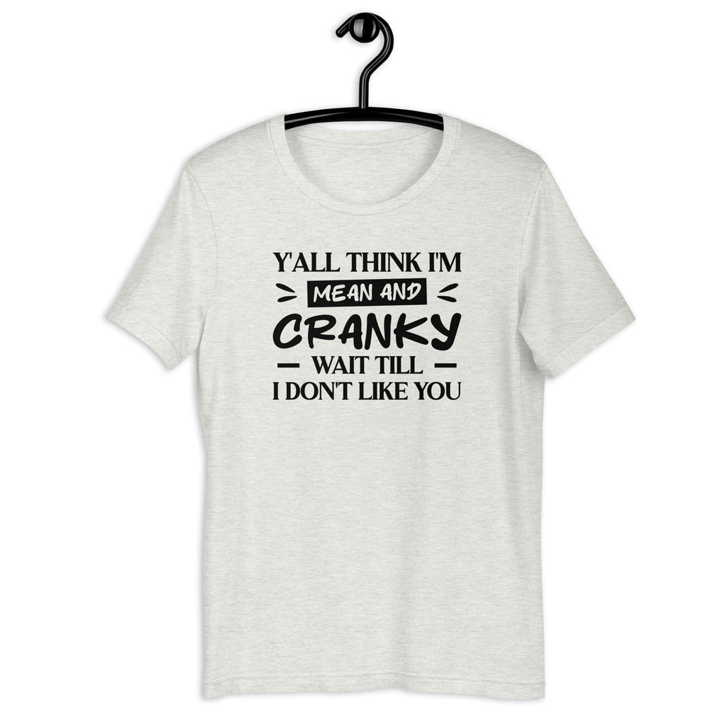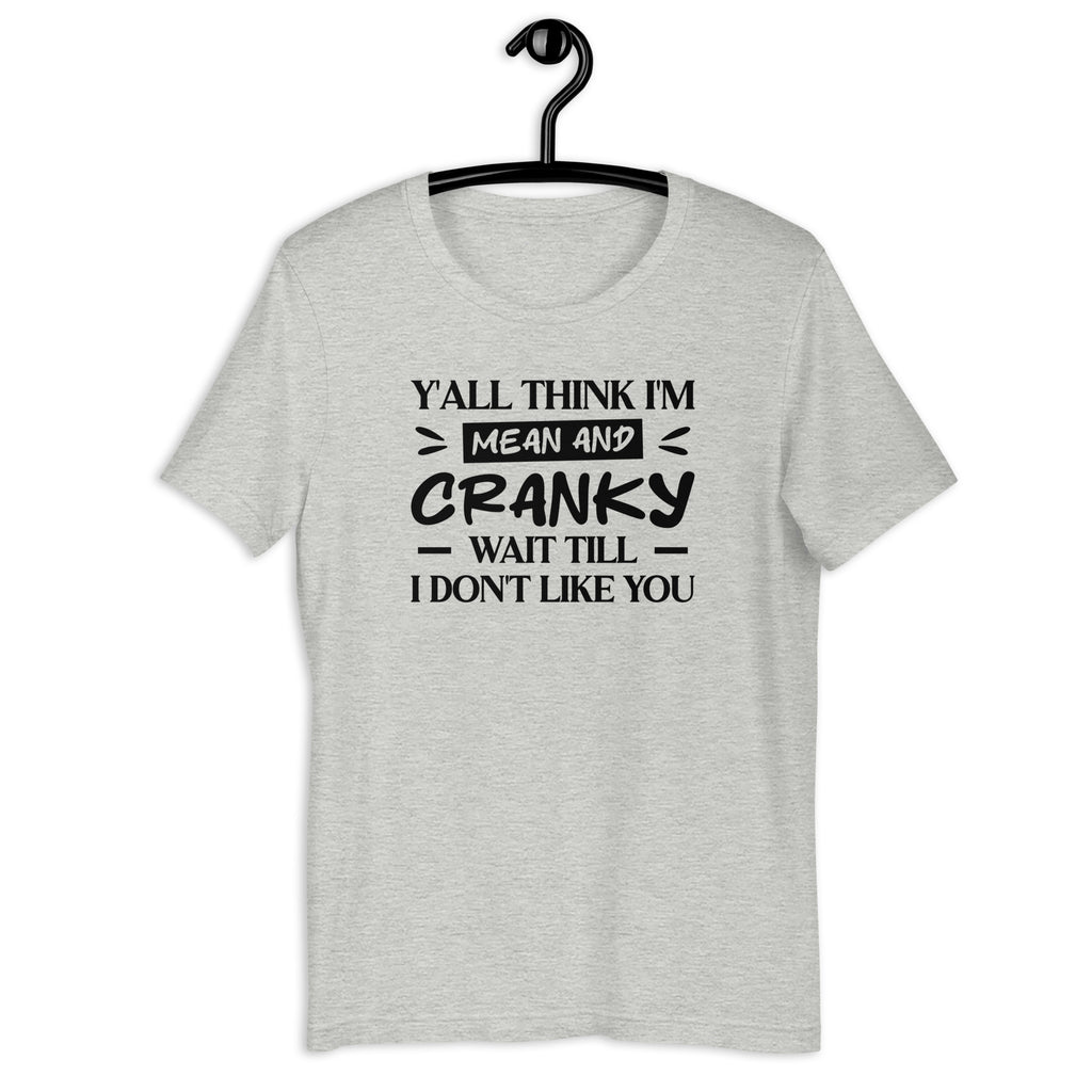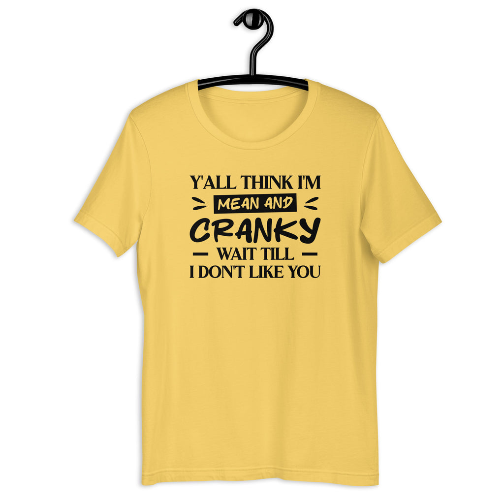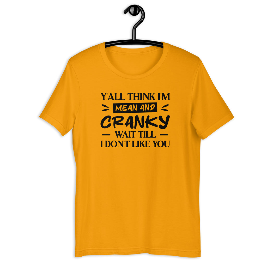 Show off your no-nonsense attitude with this “Y’all Think I’m Mean and Cranky—Wait Till I Don’t Like You” t-shirt! Perfect for anyone who’s a little sassy, a little spicy, and not afraid to admit it, this tee delivers humor with a side of attitude.