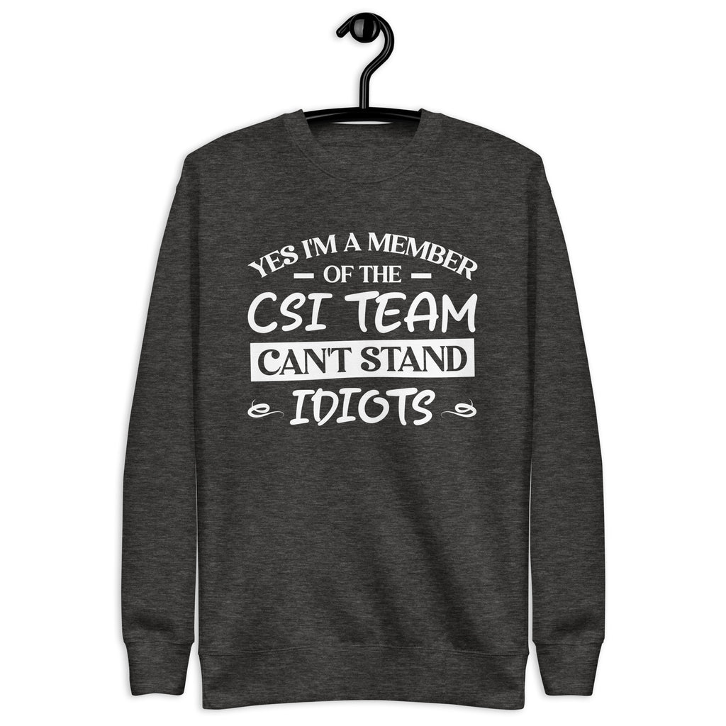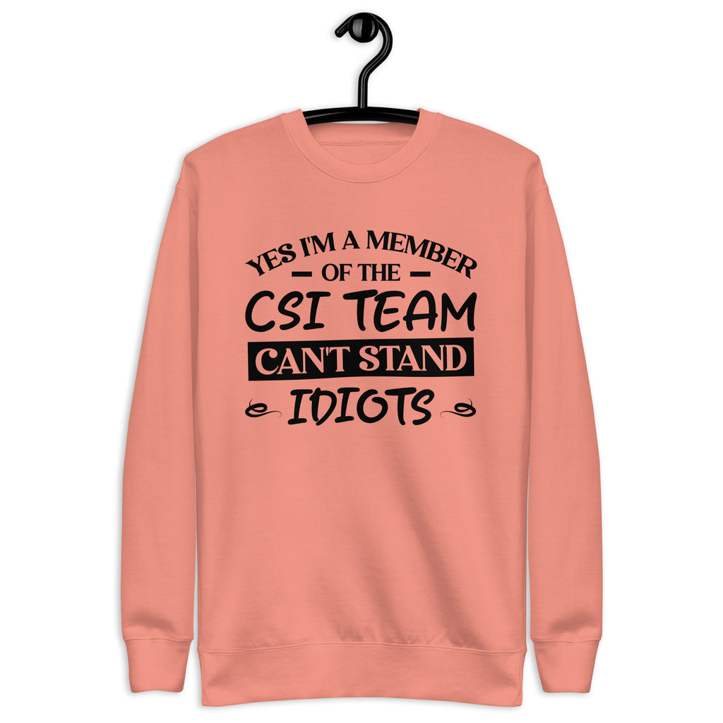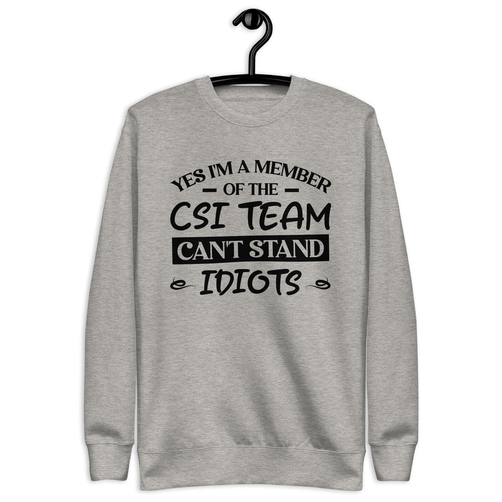 Keep your sarcasm sharp and your patience thin with this “Yes, I’m the Member of the CSI Team — Can’t Stand Idiots” sweatshirt. Perfect for anyone who’s surrounded by nonsense and handles it with humor, this witty design says exactly what you’re thinking — no explanations needed.