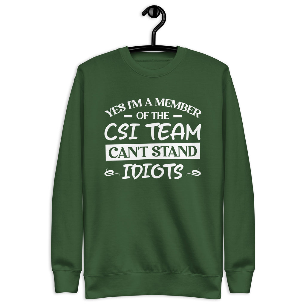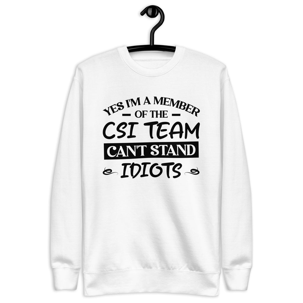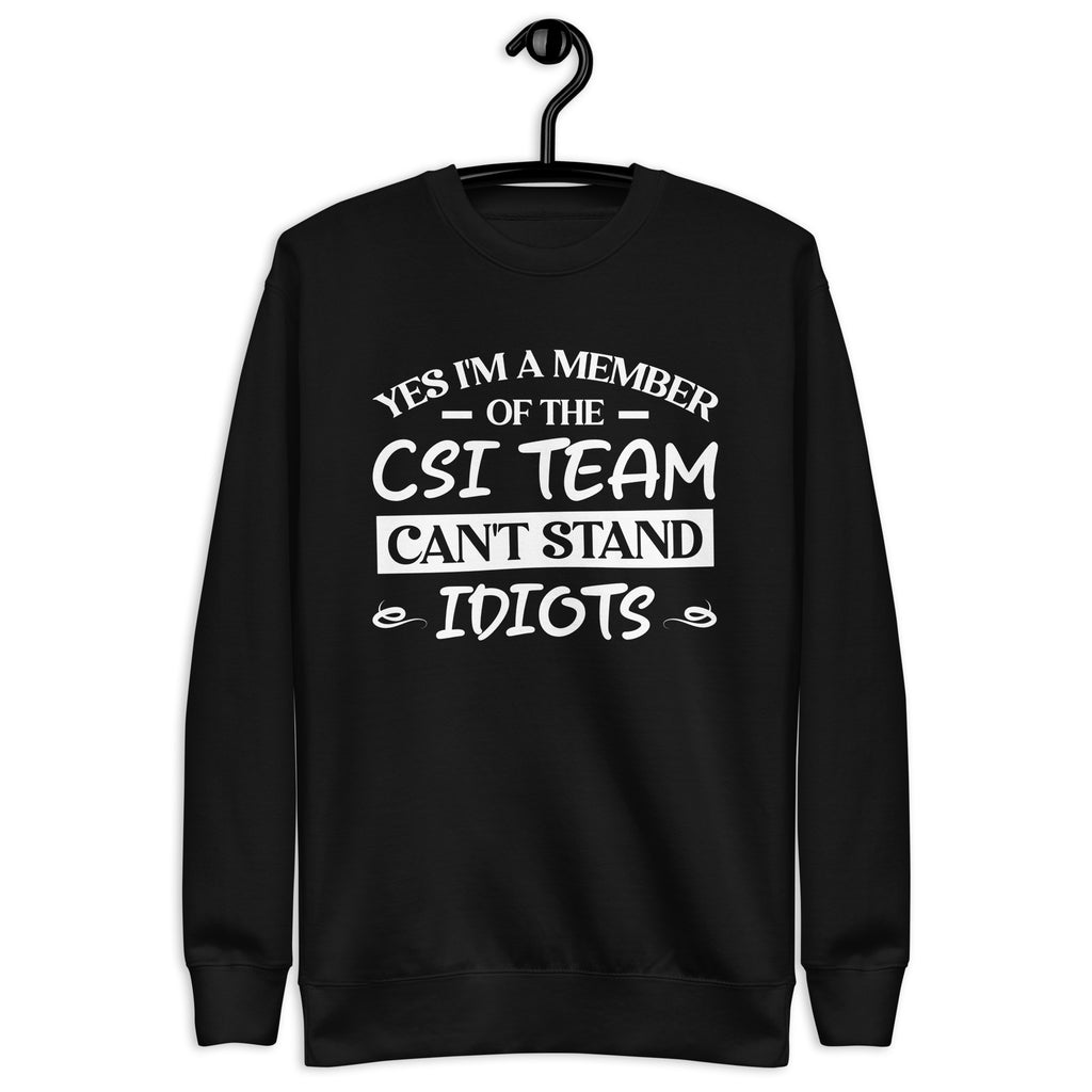 Keep your sarcasm sharp and your patience thin with this “Yes, I’m the Member of the CSI Team — Can’t Stand Idiots” sweatshirt. Perfect for anyone who’s surrounded by nonsense and handles it with humor, this witty design says exactly what you’re thinking — no explanations needed.