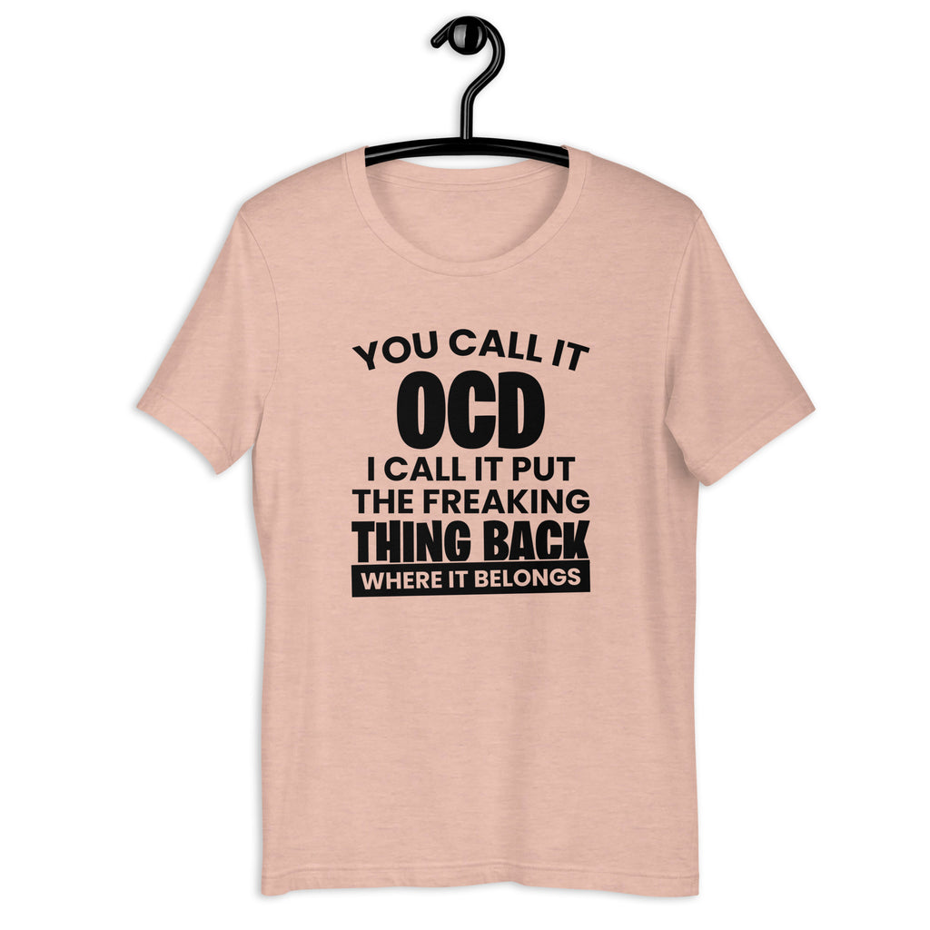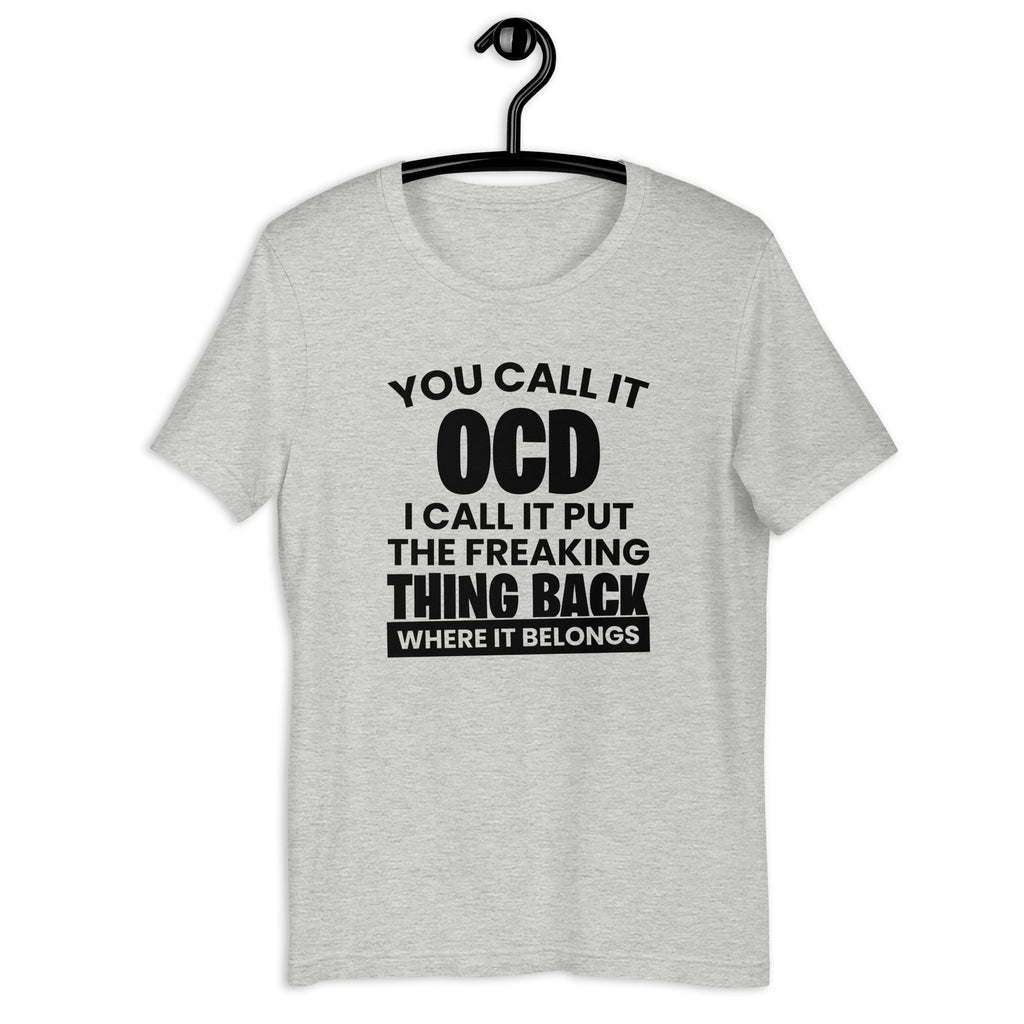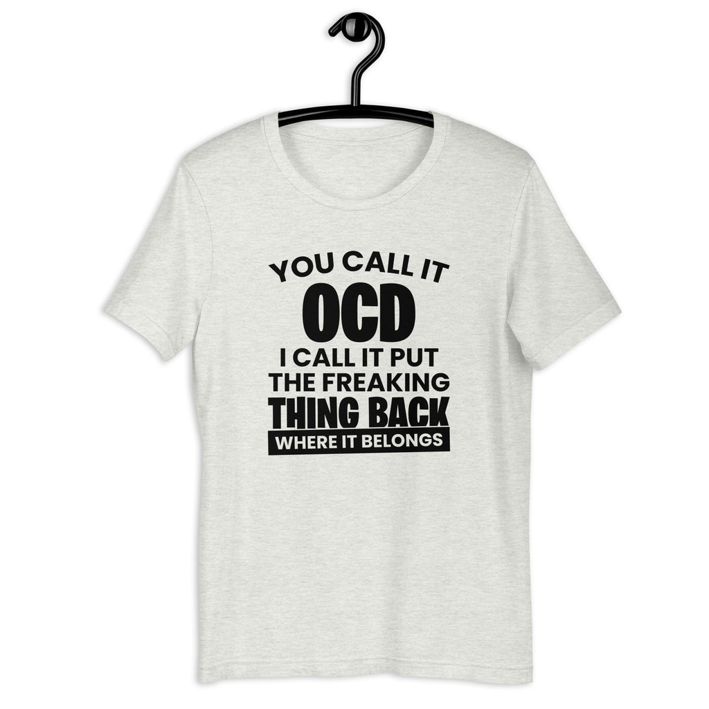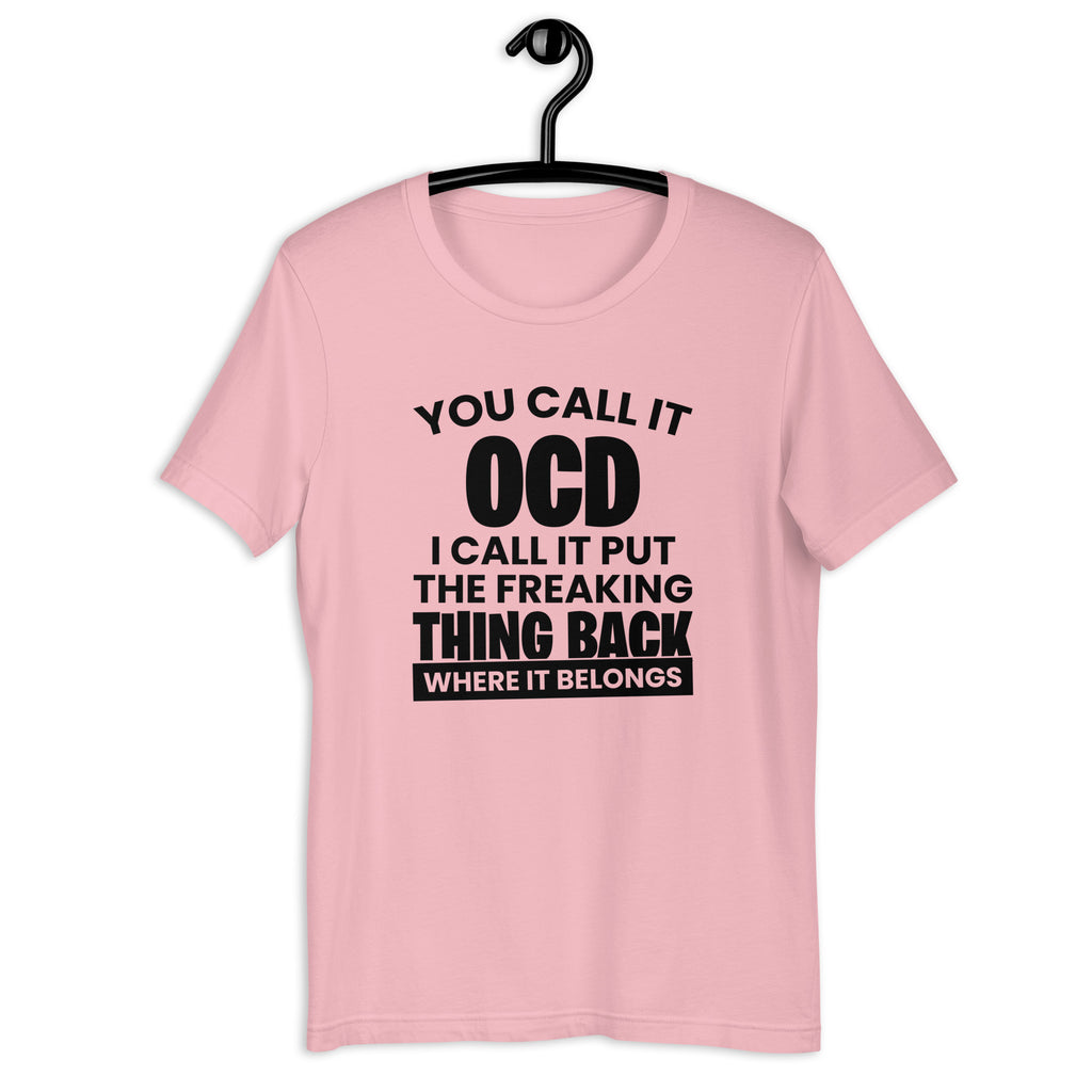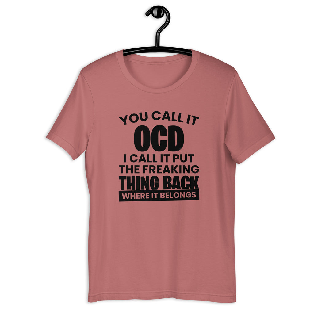 Neat freak? Nope—just organized! The “You Call It OCD, I Call It Put the Thing Back Where It Belongs” t-shirt is perfect for anyone who believes there’s a place for everything (and everything better be in its place). Equal parts funny and relatable, this tee is a must-have for the tidy, the precise, and anyone tired of cleaning up after everyone else.