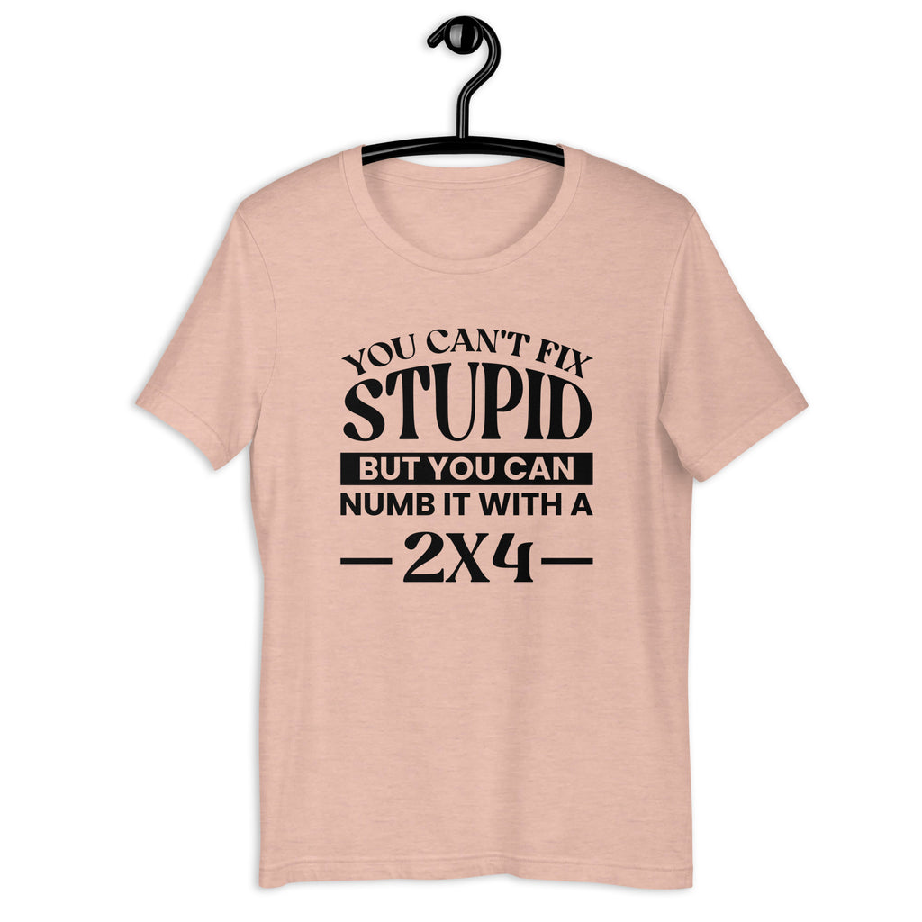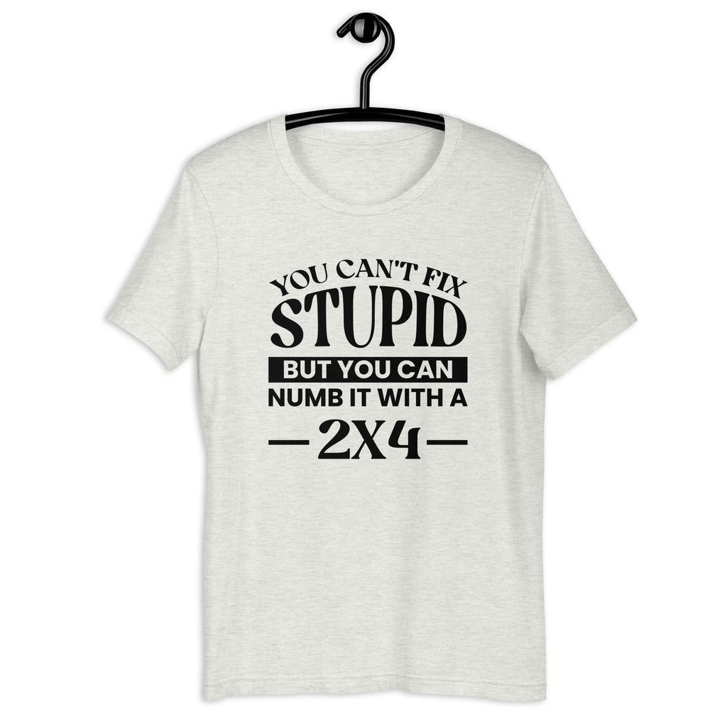 Some problems don’t have solutions—but they do have workarounds. The “You Can’t Fix Stupid But You Can Numb It With A 2x4” t-shirt delivers classic humor with a bold, no-nonsense edge.