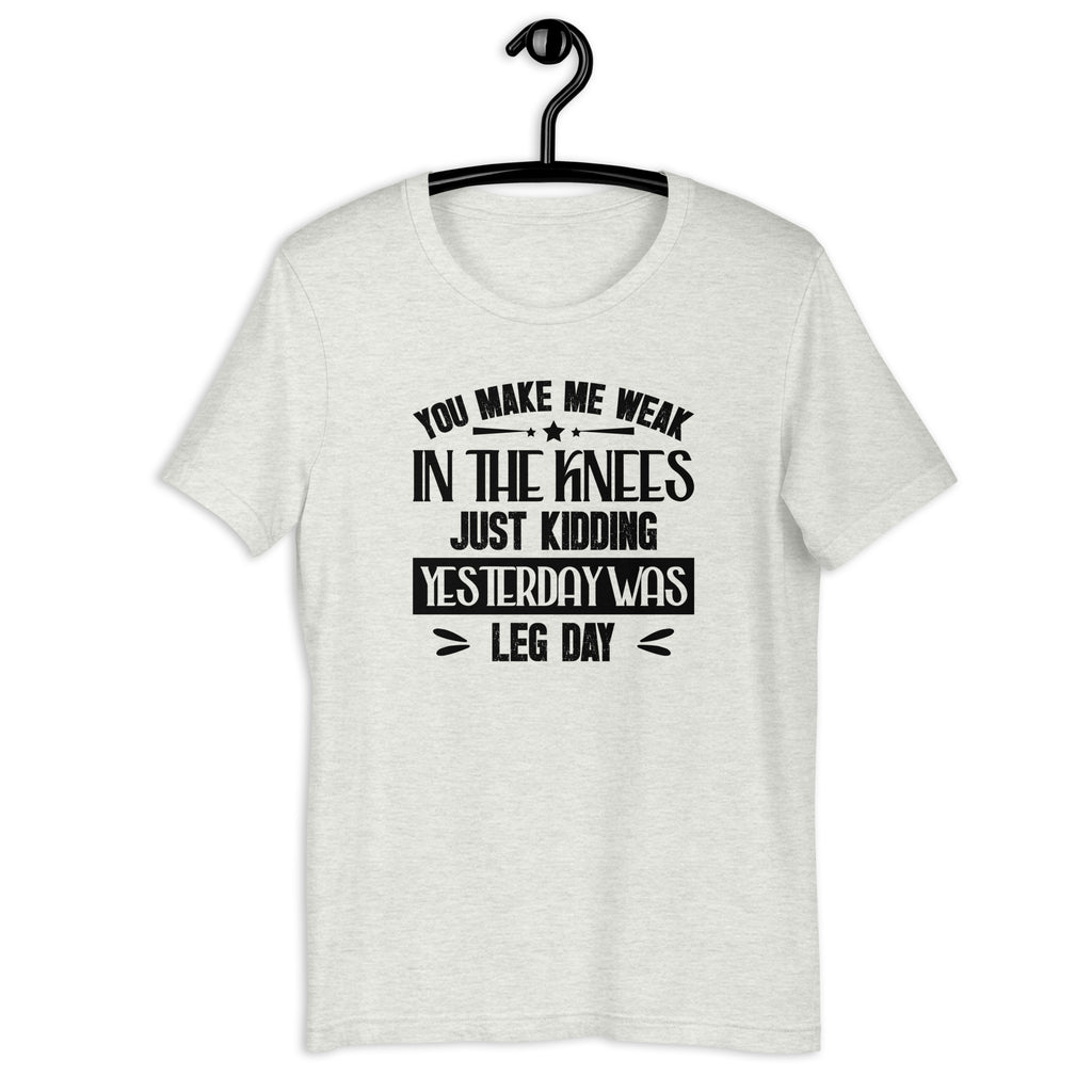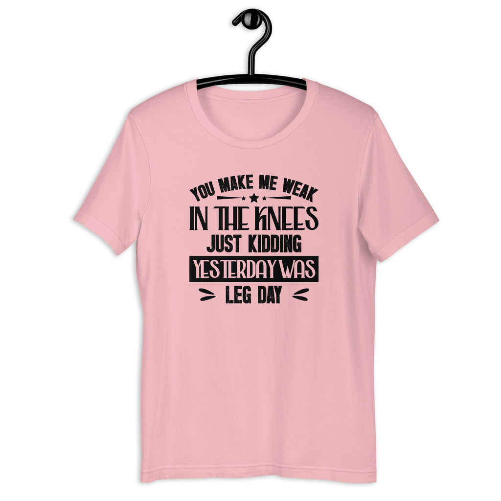 Turn flirtation into fitness humor with this “You Make Me Weak in the Knees — Just Kidding, Yesterday Was Leg Day” t-shirt! Perfect for gym lovers, sarcastic charmers, and anyone who mixes romance with reps, this tee delivers cheeky humor with a sprinkle of muscle-powered truth.