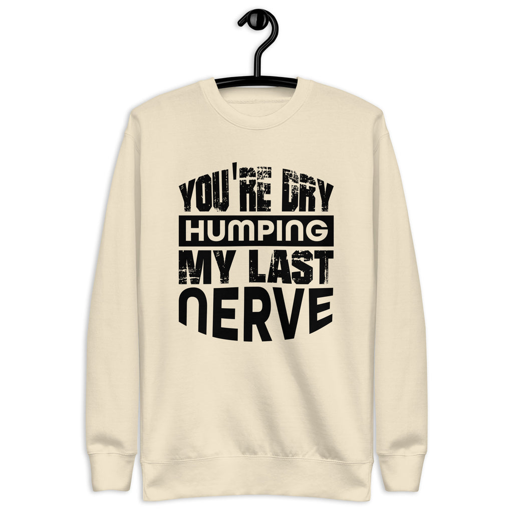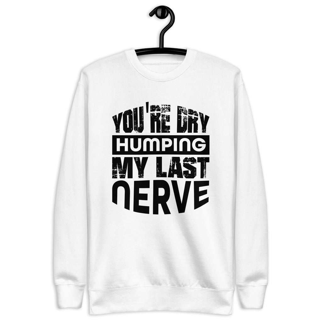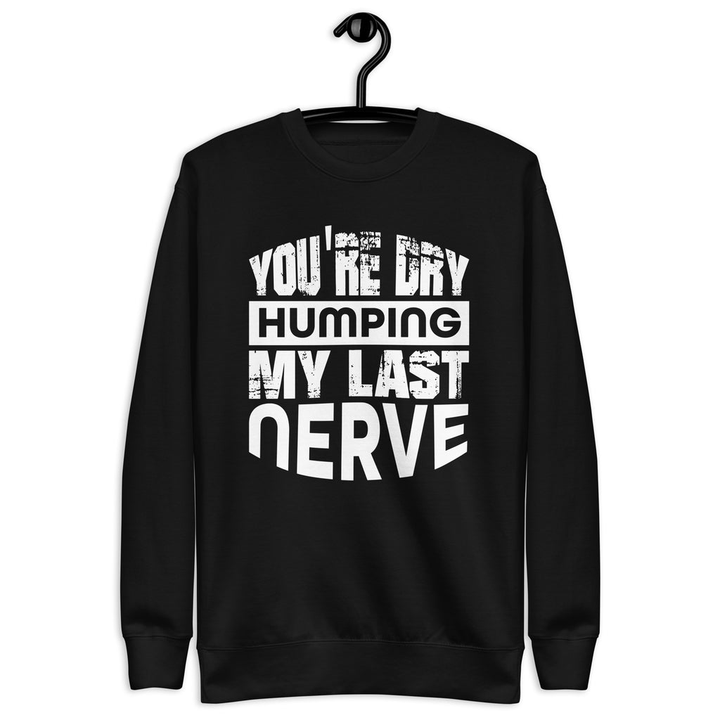 Bring the sass with the “You’re Dry Humping My Last Nerve” sweatshirt. Perfect for anyone with zero patience for nonsense, this bold piece says what you’re thinking without you having to utter a word. Equal parts hilarious and savage, it’s a must-have for those who mix attitude with humor.
