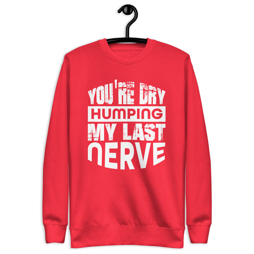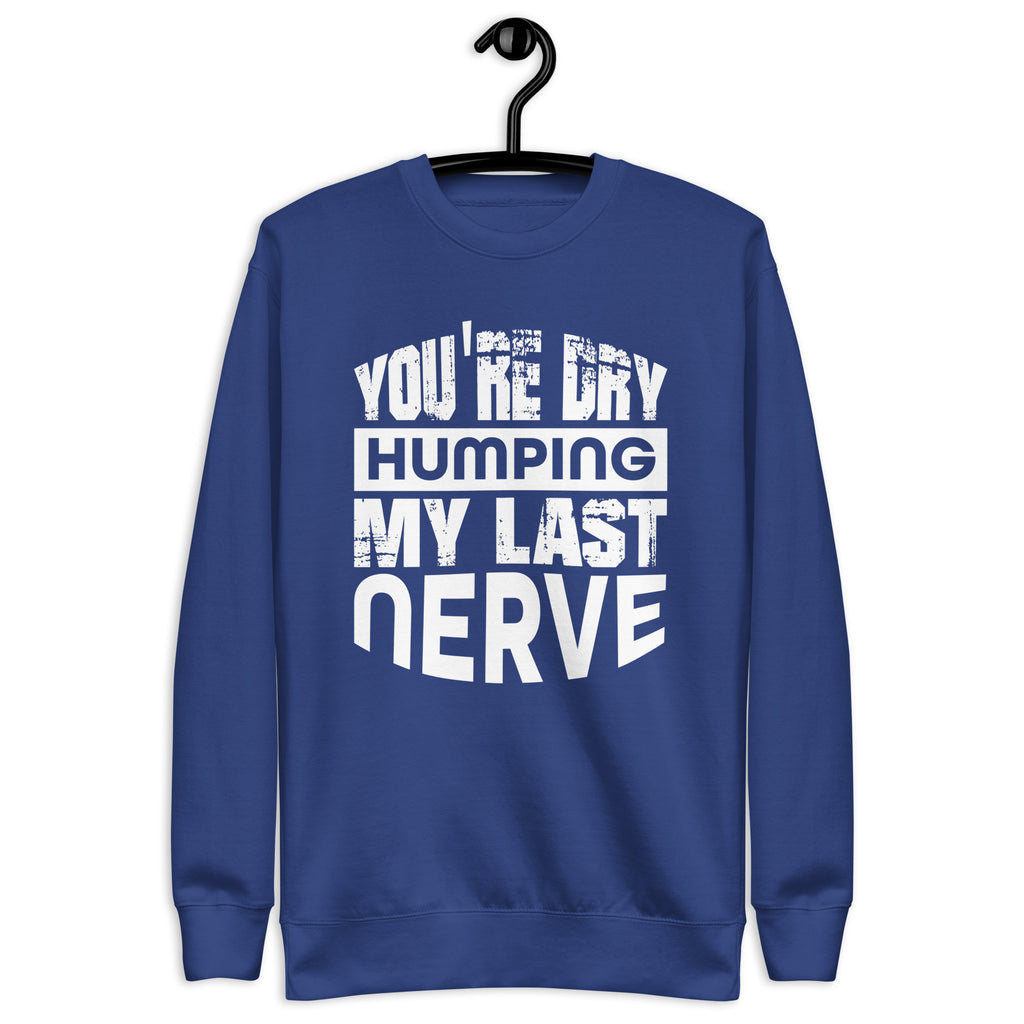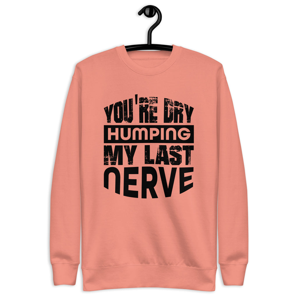 Bring the sass with the “You’re Dry Humping My Last Nerve” sweatshirt. Perfect for anyone with zero patience for nonsense, this bold piece says what you’re thinking without you having to utter a word. Equal parts hilarious and savage, it’s a must-have for those who mix attitude with humor.