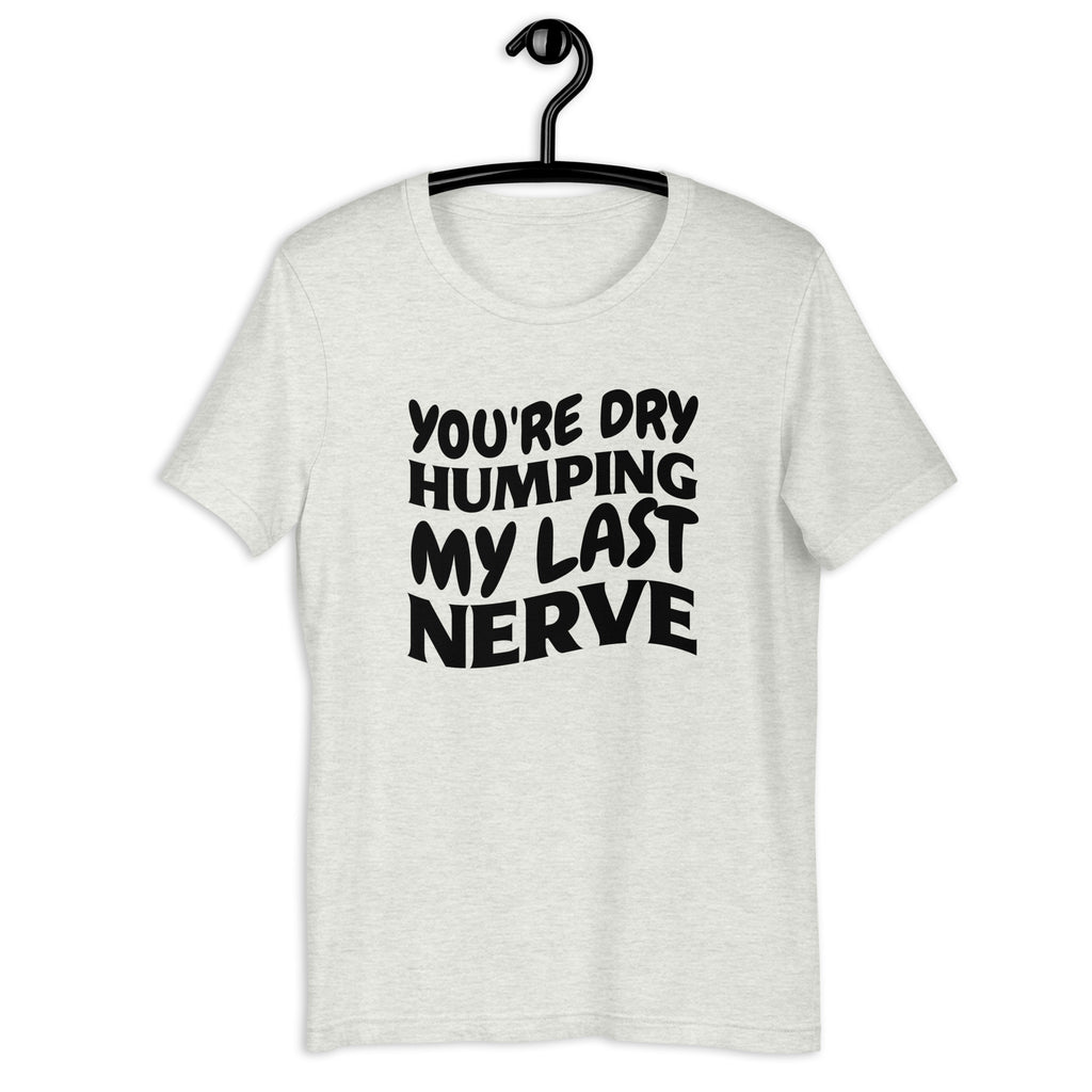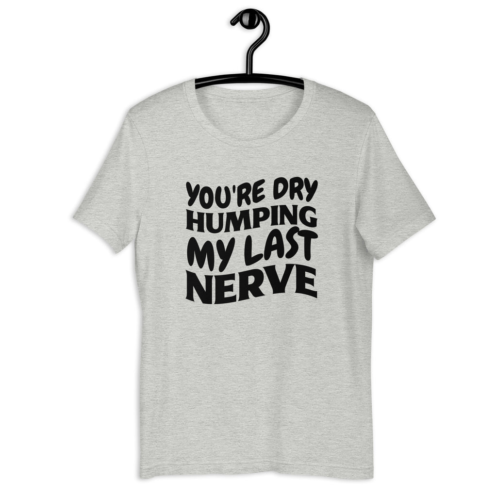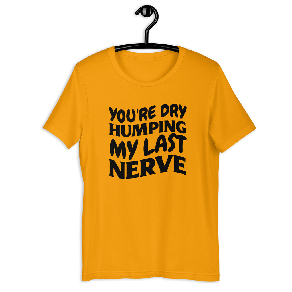 Patience has its limits. This “You’re Dry Humping My Last Nerve” t-shirt is the perfect mix of sarcasm and humor for those days when people just won’t stop pushing your buttons.