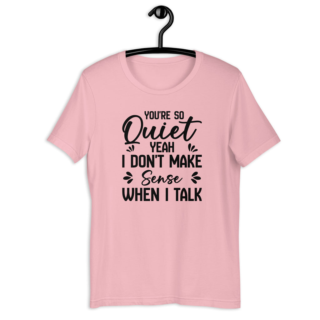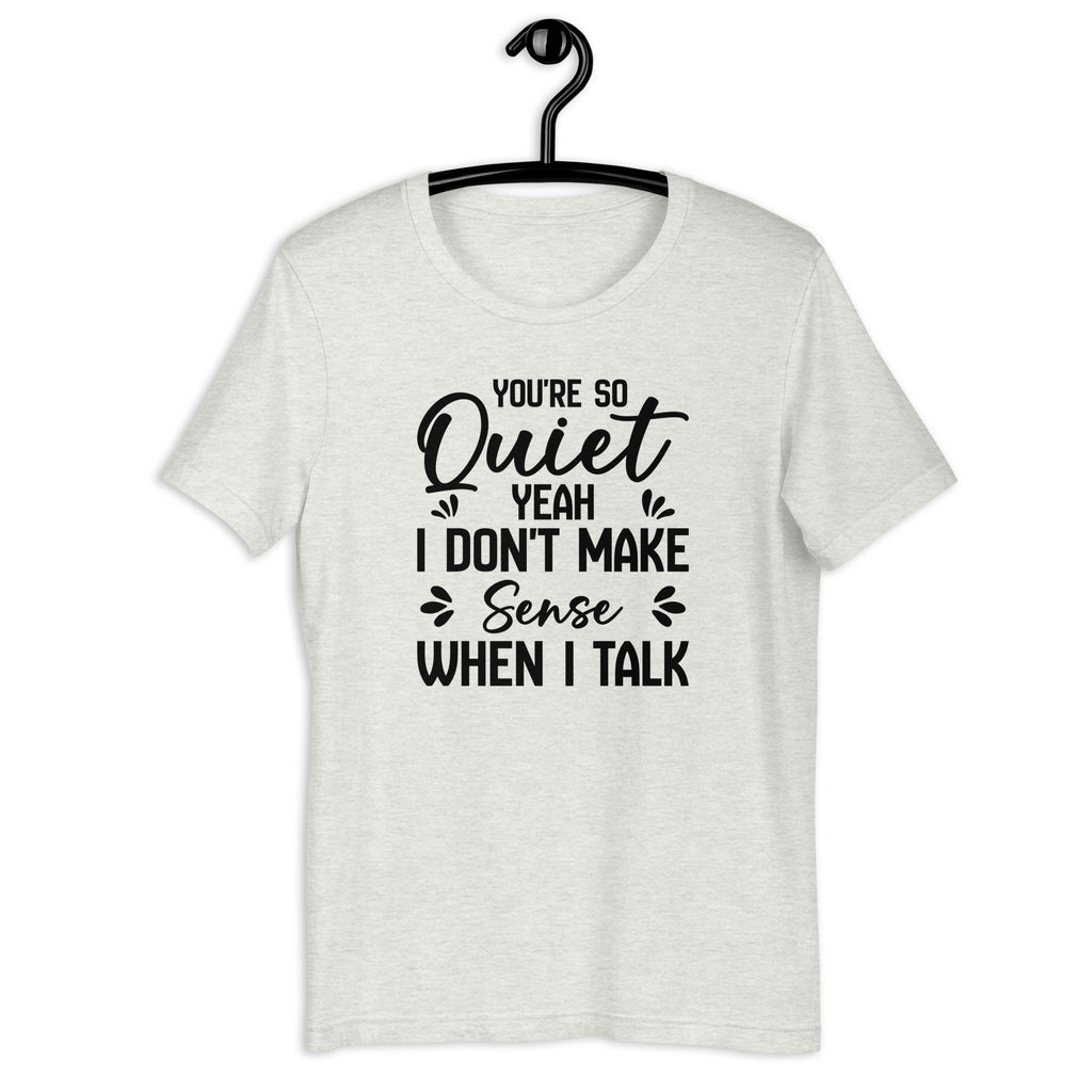 Funny, honest, and perfectly relatable. The “You’re So Quiet — Yeah, I Don’t Make Sense When I Talk” T-shirt is for anyone who embraces their chaotic, unpredictable, or just plain confusing side. It’s bold humor meets everyday reality in one clever statement.