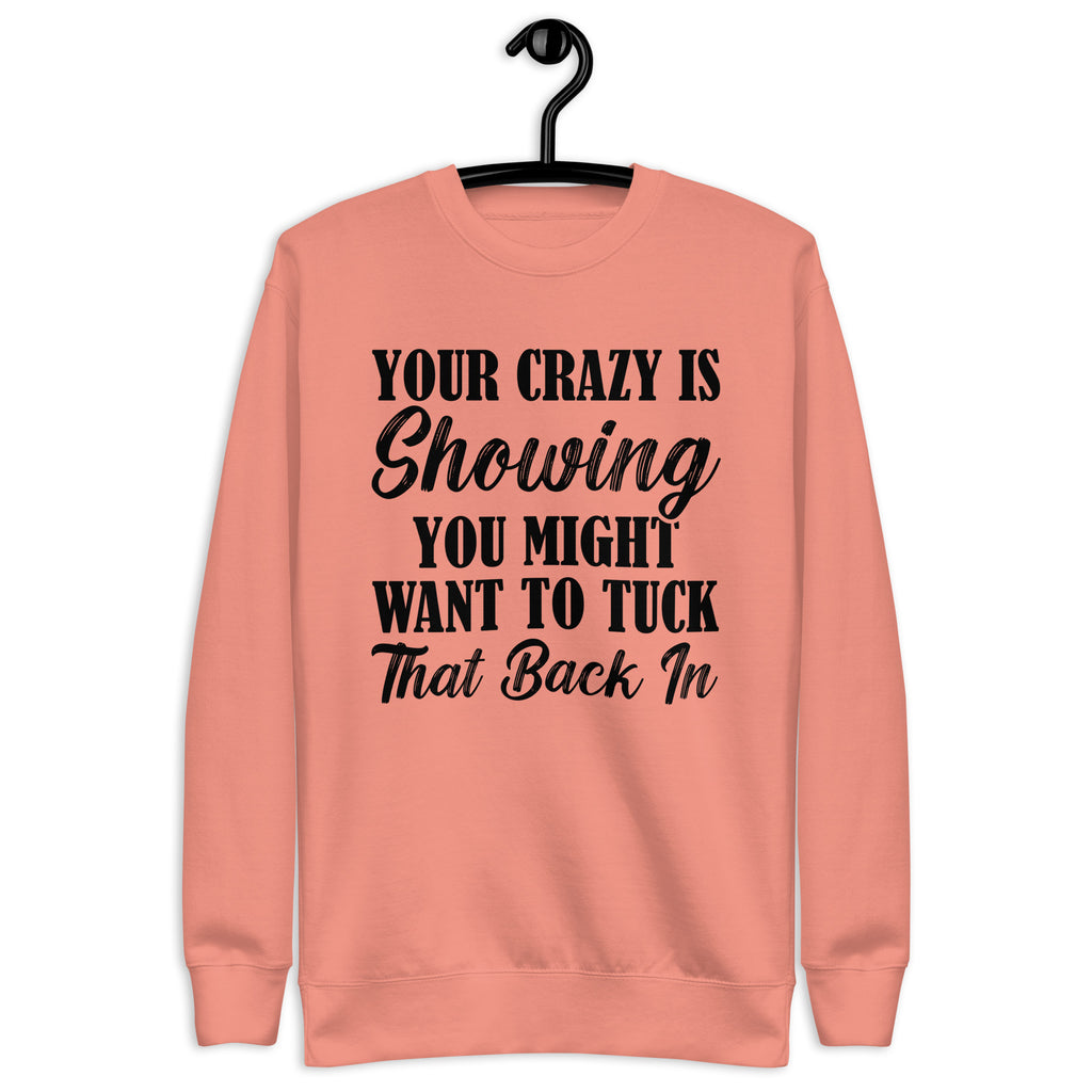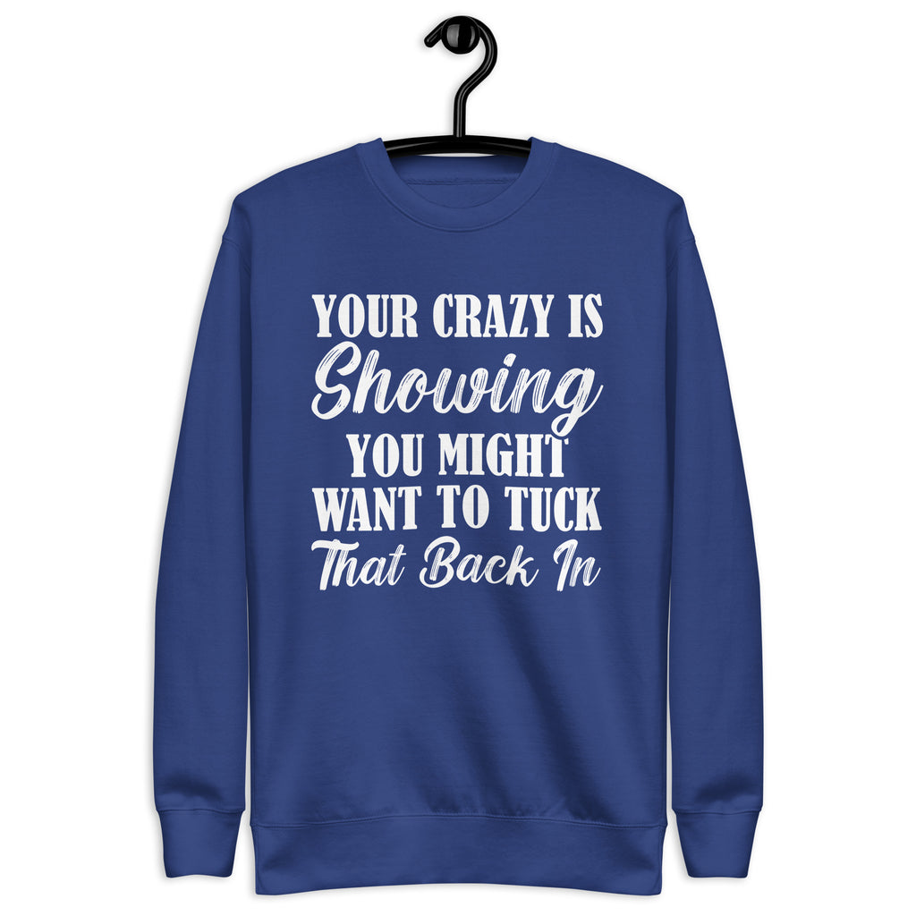 Keep your sense of humor front and center with the “Your Crazy Is Showing — You Might Want to Tuck That Back In” sweatshirt. This funny and sassy design is perfect for anyone who loves a good laugh and isn’t afraid to call out the chaos (in themselves or others).
